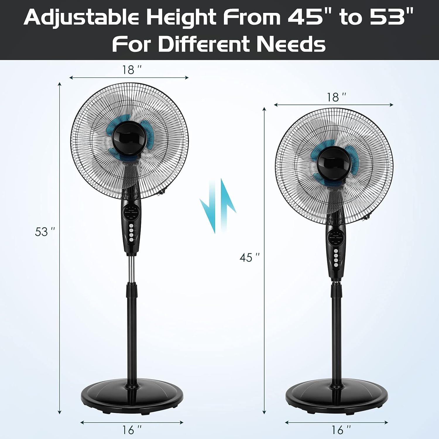 🧊【Adjustable Height for Wide Application】🧊 45 inches to 53 inches height adjustment allows the pedestal fan to fit the different heights where the airflow is needed. Whether you are lying, sitting or standing, it can still serve you well. You can place this high-effective fan in your home, office, reception center, etc.