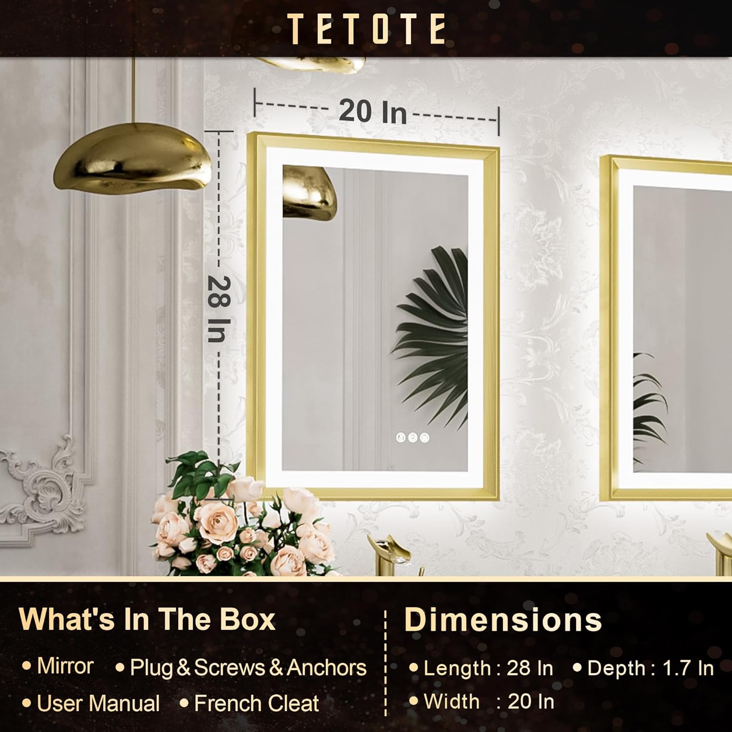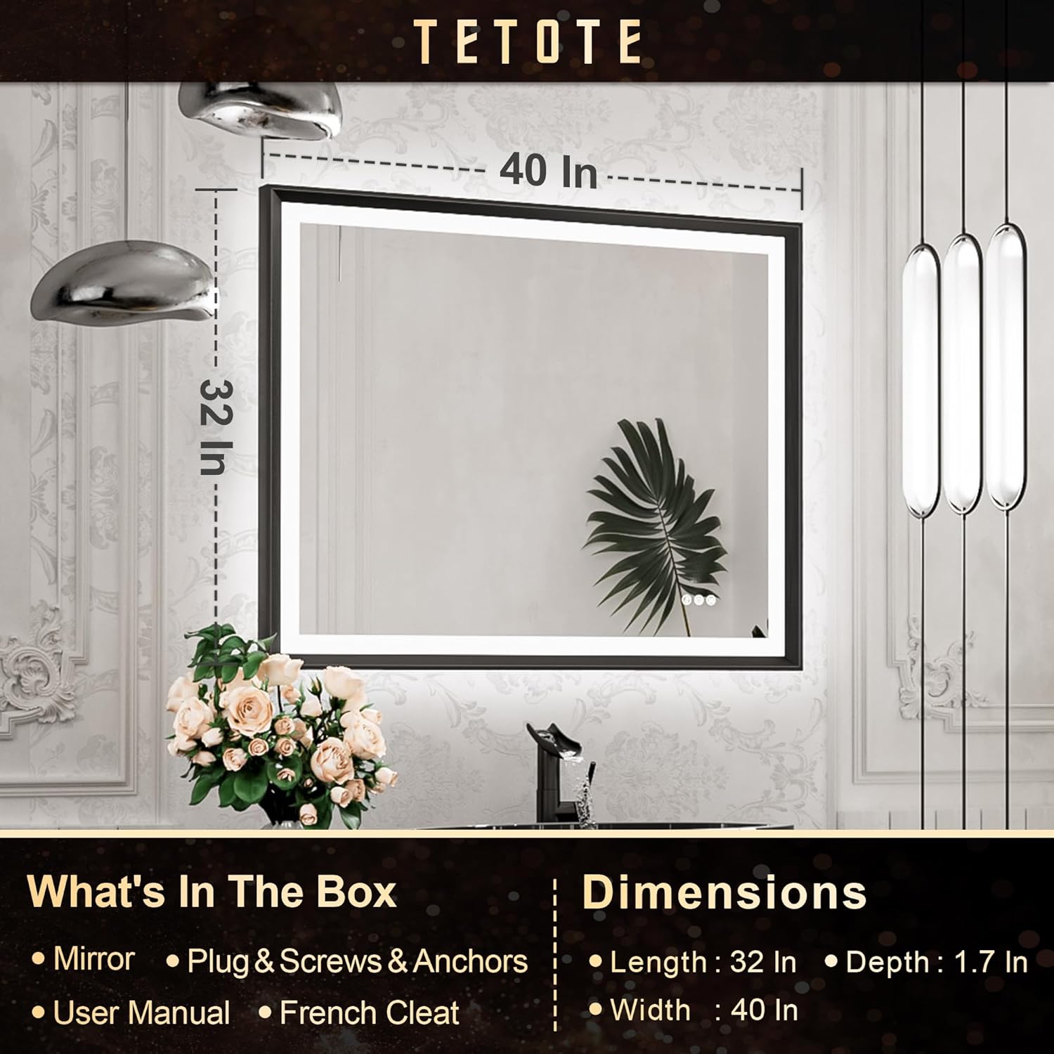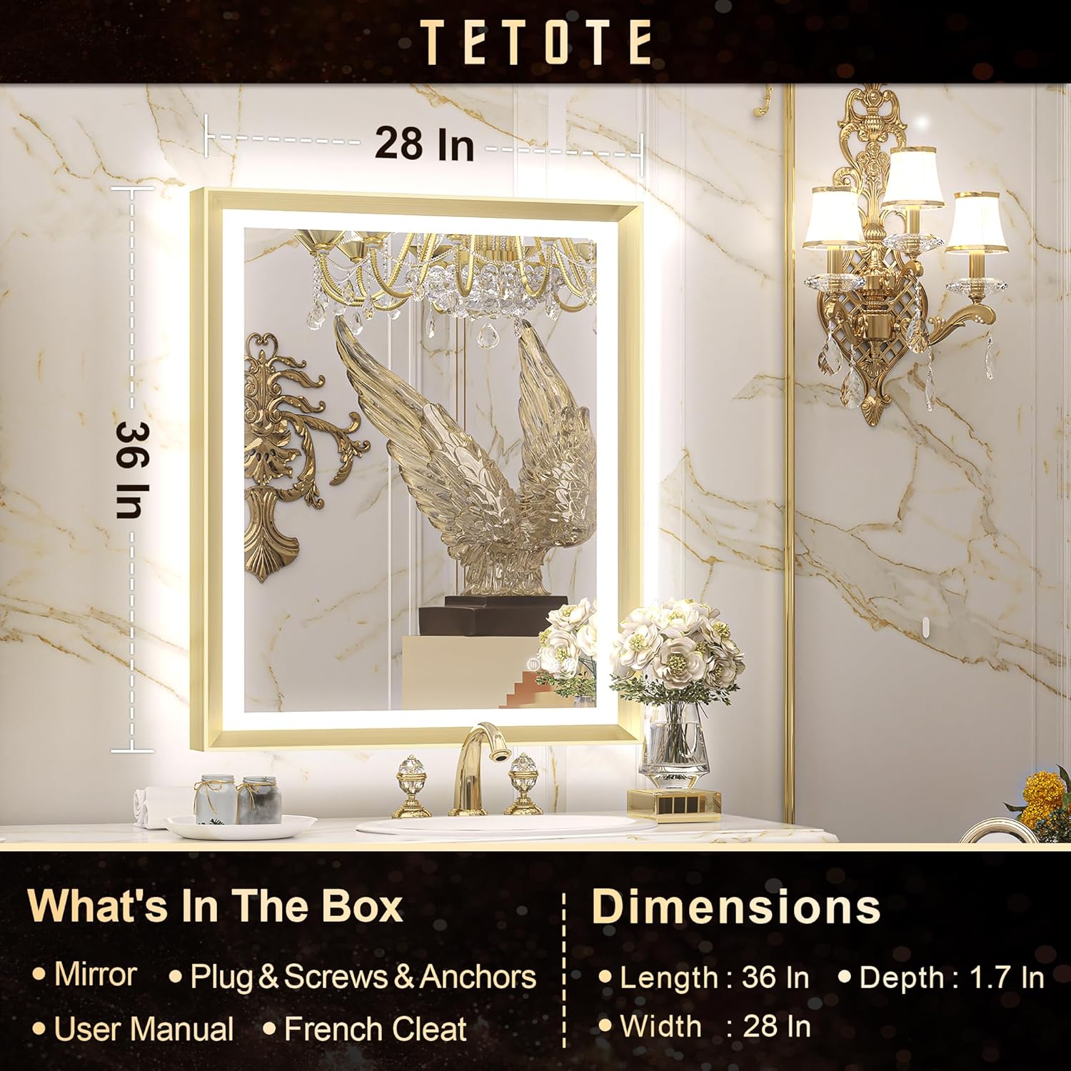 - ✨【3 Color Frontlit & Backlit】TETOTE LED Bathroom Mirror with double high density LEDs light strips shows brighter and softer backlit & frontlit lighting.Brightness and color temperature can be stepless adjusted,3000K-6000K Warm/Natural/White Lighted CRI 90+ rendering perfectly for makeup or selfie.The SMART MEMORY always kept the best setting.