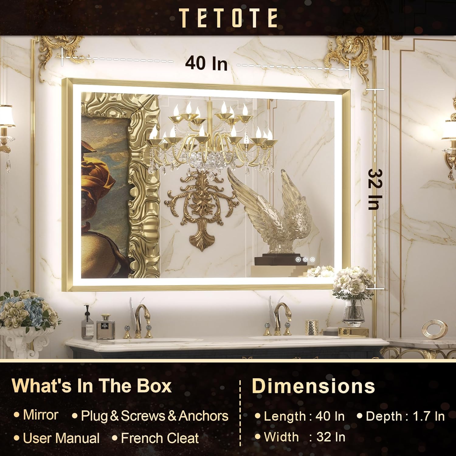 - ✨【Easily & Reliable French Cleat Mounted】TETOTE LED mirror for bathroom is easy to install with French Cleat Mounting.Just align the hook fits into the slot and complete installation.Horizontal or vertical all by your choice.