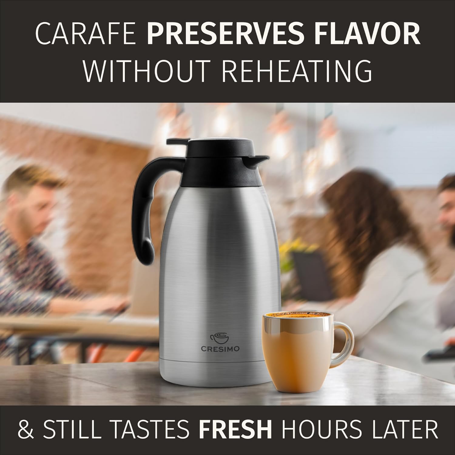 Thermal Coffee Carafe 68oz / 2L - 12 Hours Hot Beverage Dispenser, Insulated Stainless Steel Carafe for Hot Liquids, Coffee Carafes For Keeping Hot Coffee Dispenser for Parties -Large Tea Carafe Flask