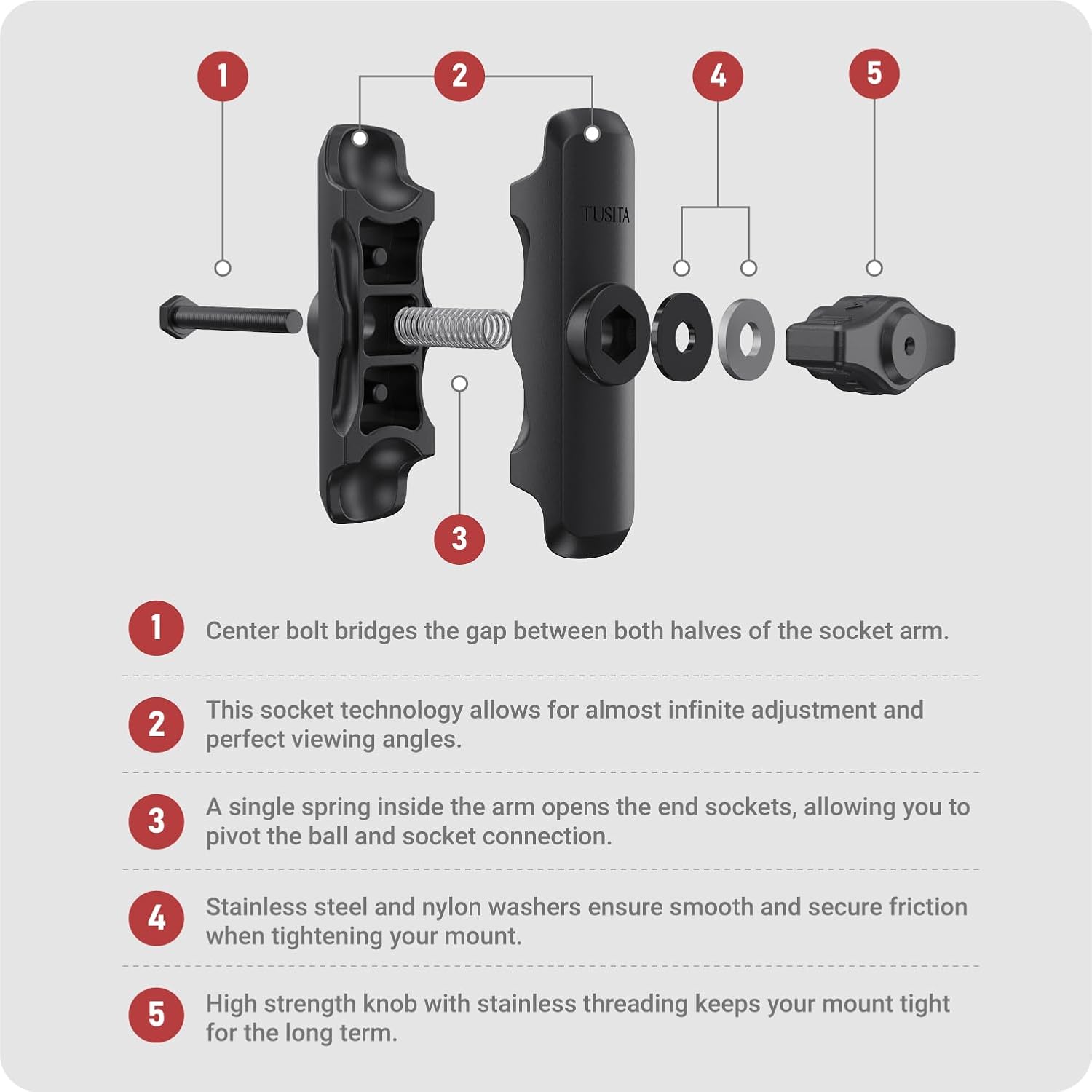 TUSITA Universal Marine Electronic Mount - B Size Medium, Aluminum Fish Finder Mount with 1" Ball for Boat, 360° Rotation, High Salt Water Resistant, Compatible with Garmin, Lowrance and More