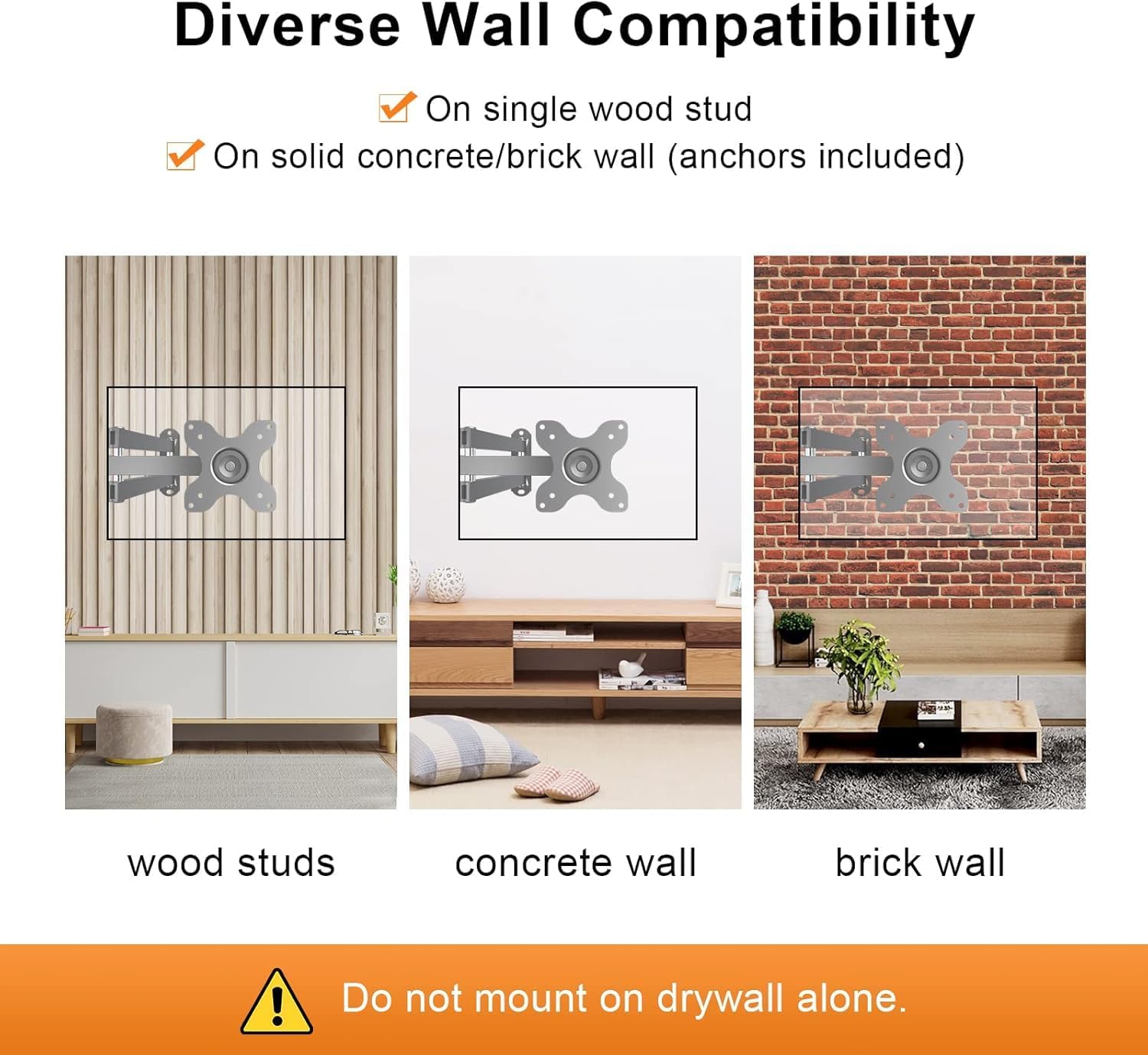 - OPTIMAL VIEWING ANGLE - The universal TV wall bracket is designed to tilt up and down +/-15° and rotate 90° left and right for maximum viewing flexibility. You can easily find the angle that suits you best, and it can also reduce your back and neck fatigue.