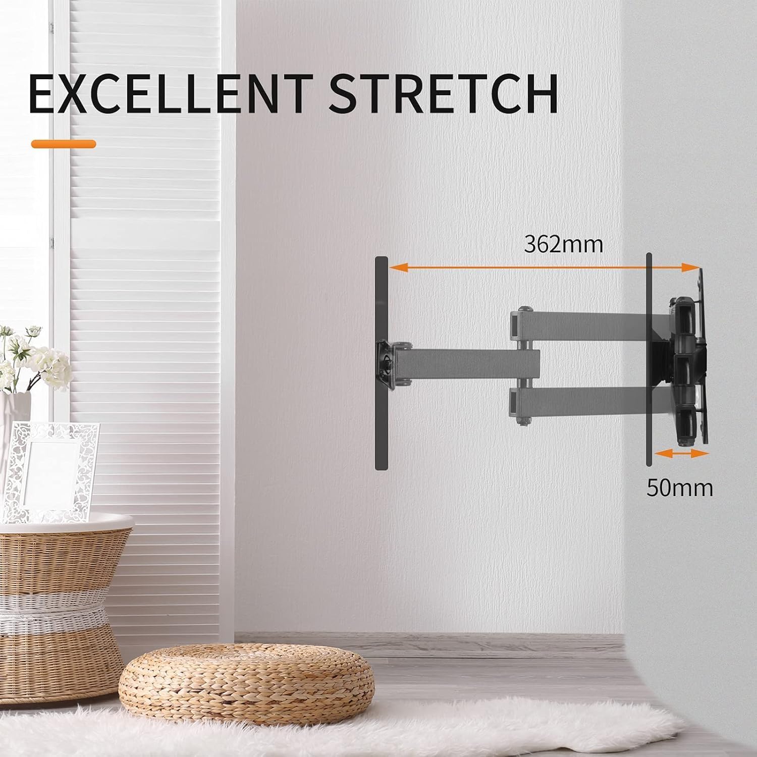 - SPACE SAVE - Places TV just 50mm from the wall to enhance the look of ultra-thin LED TV. Extends up to 356mm from the wall for the space saving. This saves valuable space and makes your home look neat and beautiful.