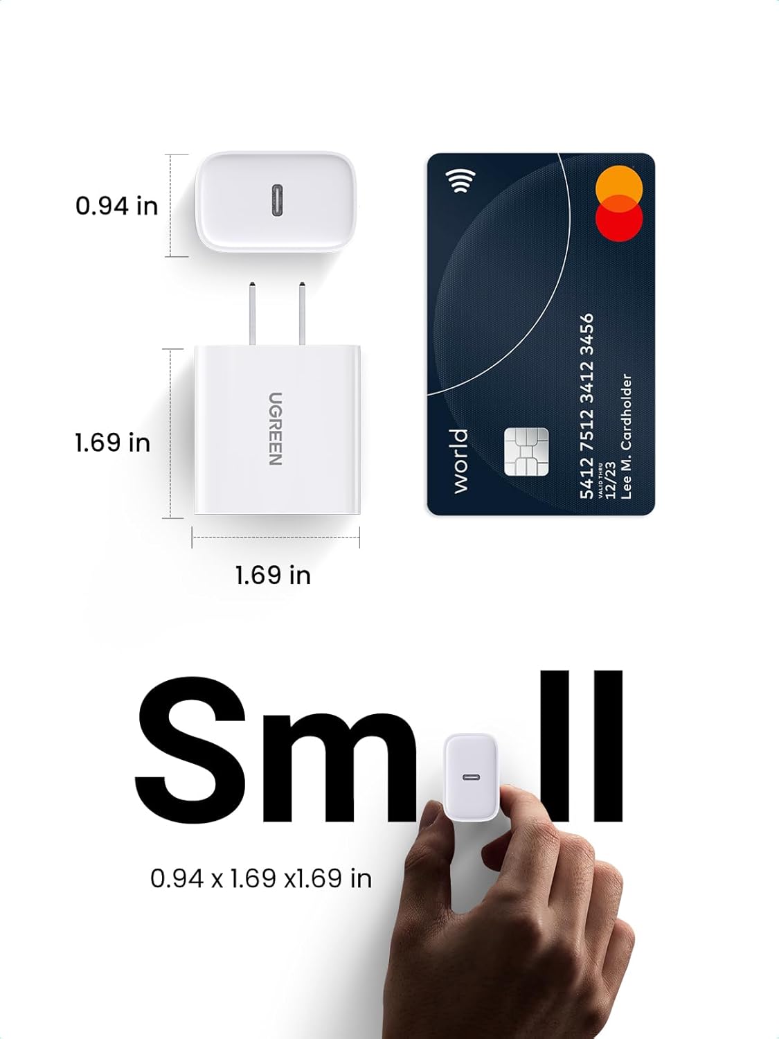 UGREEN 20W PD Fast Wall Charger Block USB C Power Delivery Adapter Compatible with iPhone 16 15 14 13 12 Pro Max SE 11, Pixel, Galaxy S25 S24, iPad mini Pro