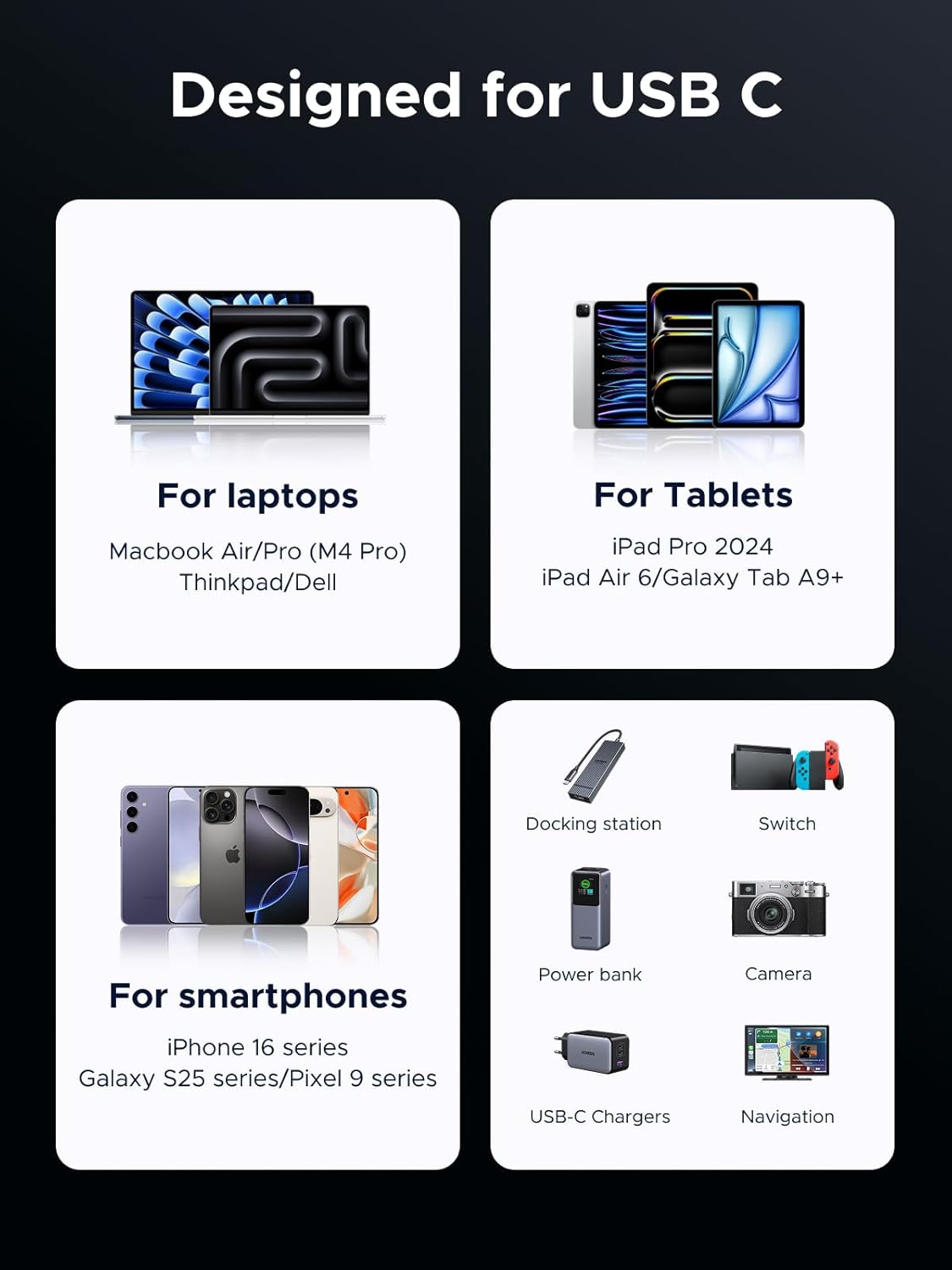Compatible devices | USB C Monitors, Hubs, Docks, MacBook Air, iPhone 16 15 Pro Max, Galaxy S25 S24 Ultra |