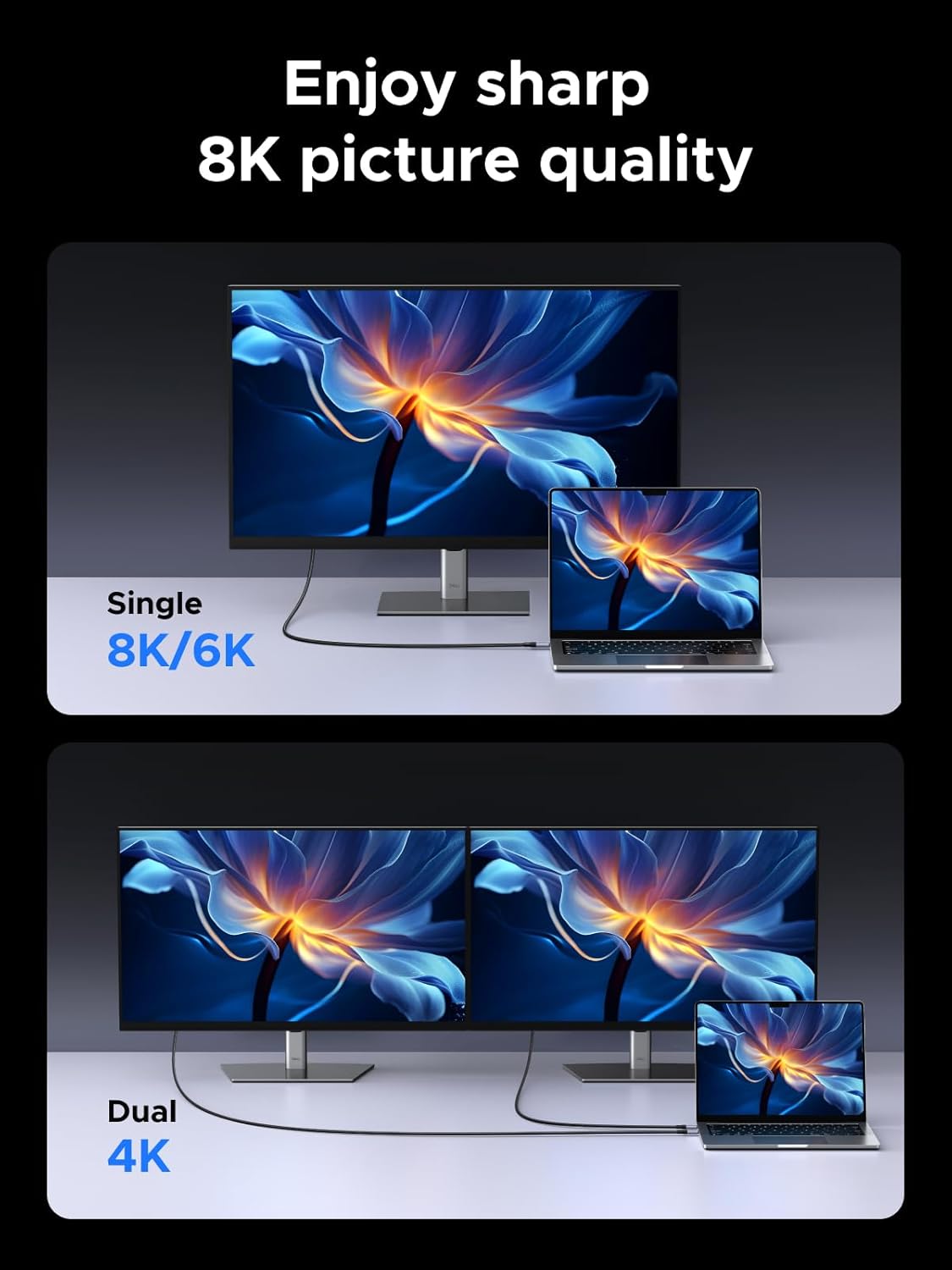 - Support 8K 60Hz UHD Video Output: This 240W USB C cable supports video transmission with a single video resolution of up to 8K@60Hz, whether you are editing HDR movies, designing high-precision drawings, or watching immersive videos, the details are clearly visible.