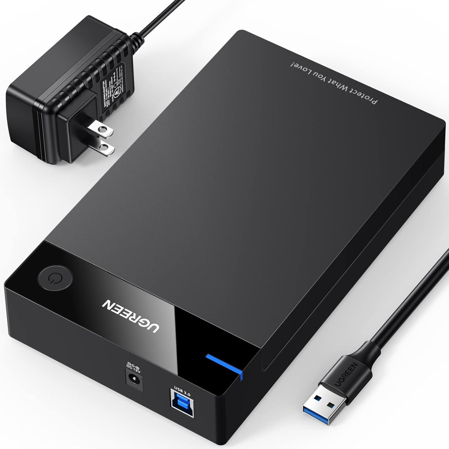 UGREEN Hard Drive Enclosure for 3.5 2.5 Inch SATA SSD HDD USB 3.0 to SATA External SSD Enclosure with 12V Power Adapter, Compatible with WD Seagate Hitachi SATA III HDD SSD 20TB Max, Tool Free Design