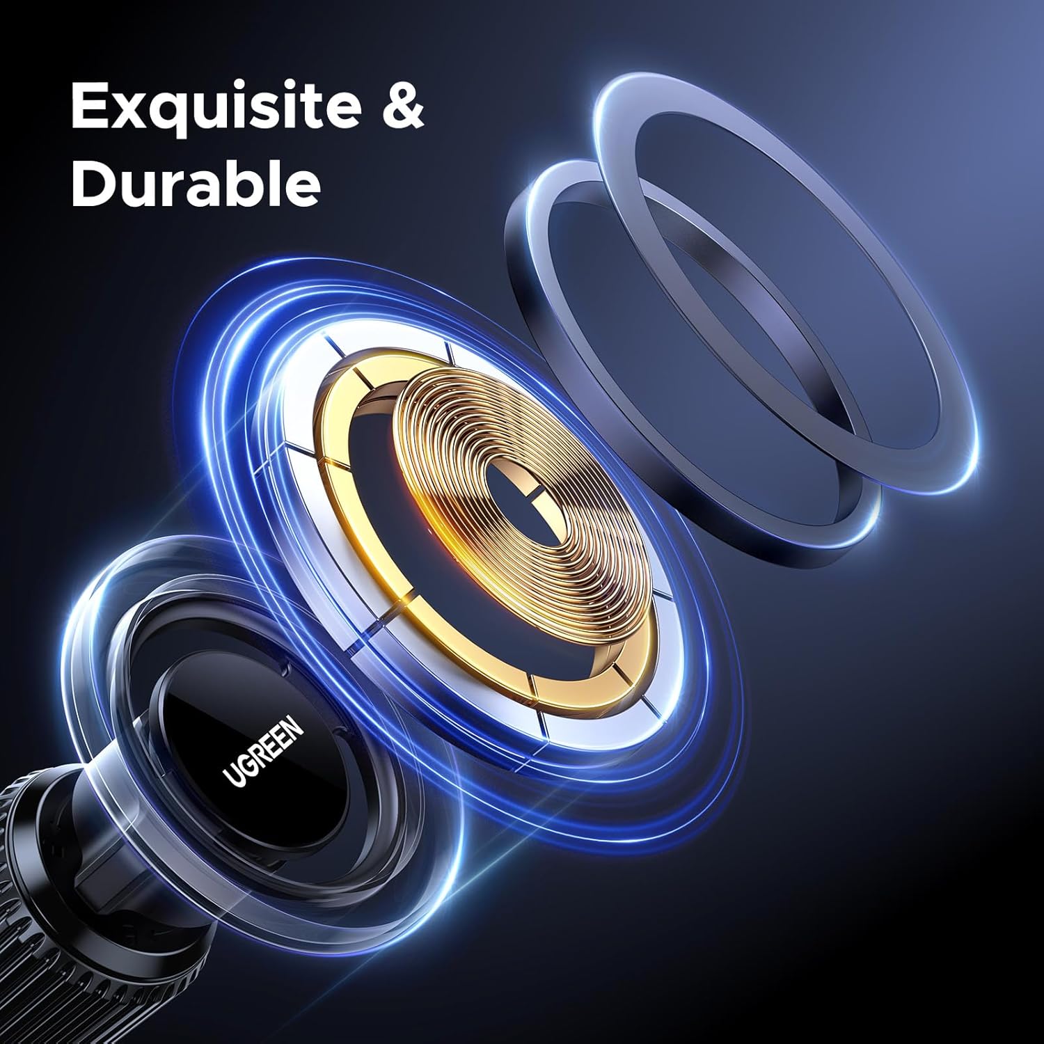 UGREEN MagSafe Car Phone Mount Air Vent Magnetic Phone Holder Car 360° Rotation Magsafe Phone Mount with 2 Metal Rings Compatible with iPhone16 15 14 13 12 Pro Max All Phones Magsafe Case