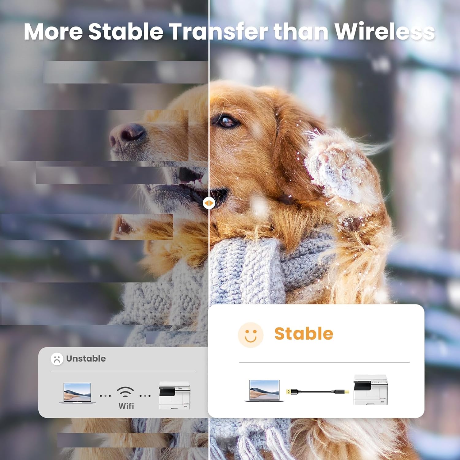High Speed Transfer: Up to 480 Mbps transfers data speed for USB 2.0 devices, the USB Type B cable is backwards compliant with full-speed USB 1.1 and low-speed USB 1.0. Compared with WIFI connection, this USB B Cable provides a more stable data transmission and offer a more efficient work way for you