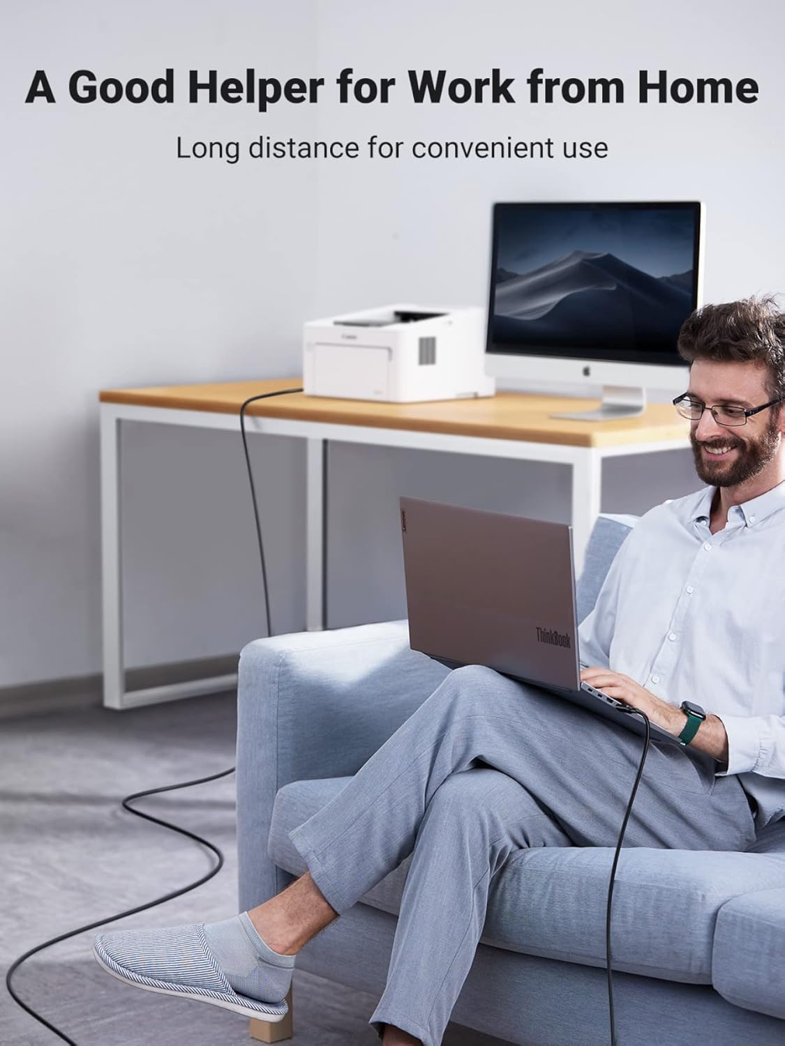 Ideal Printer Scanner Cable: UGREEN USB 2.0 printer cable is ideal for connecting your scanner, printer, server, hard drive,camera, piano and other usb b devices to a laptop, computer or other USB-enabled device for data transfer