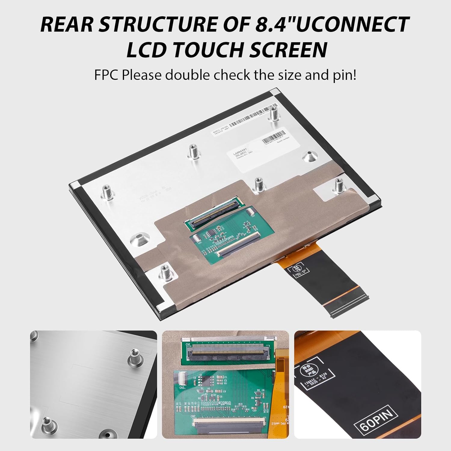 - Upgraded Replacement Part : LA084X01(SL)(01)(02). A tailored solution for Uconnect 4, 4C, UAQ, UAS systems, this LCD touch panel fits 8.4 inch screens compatible with both GPS-enabled and non-GPS radios.