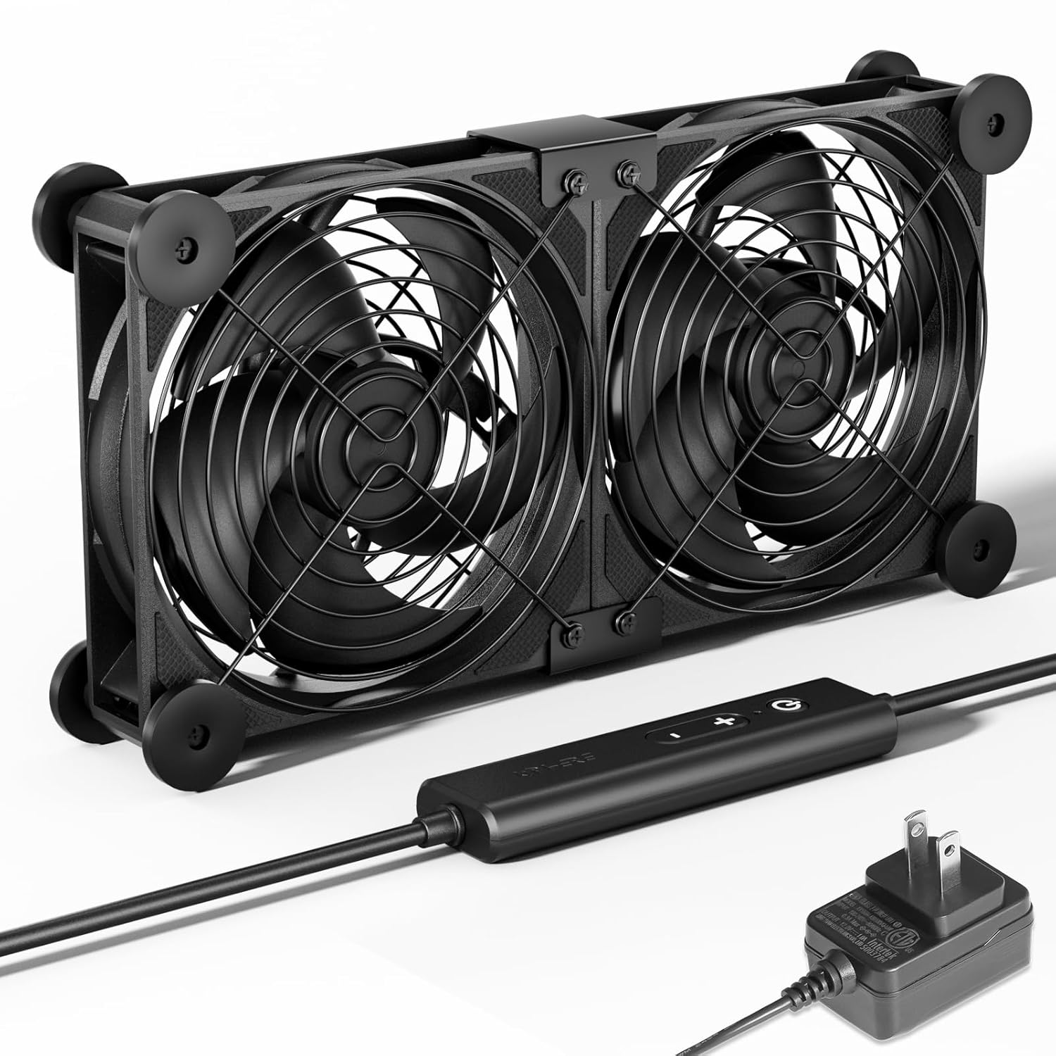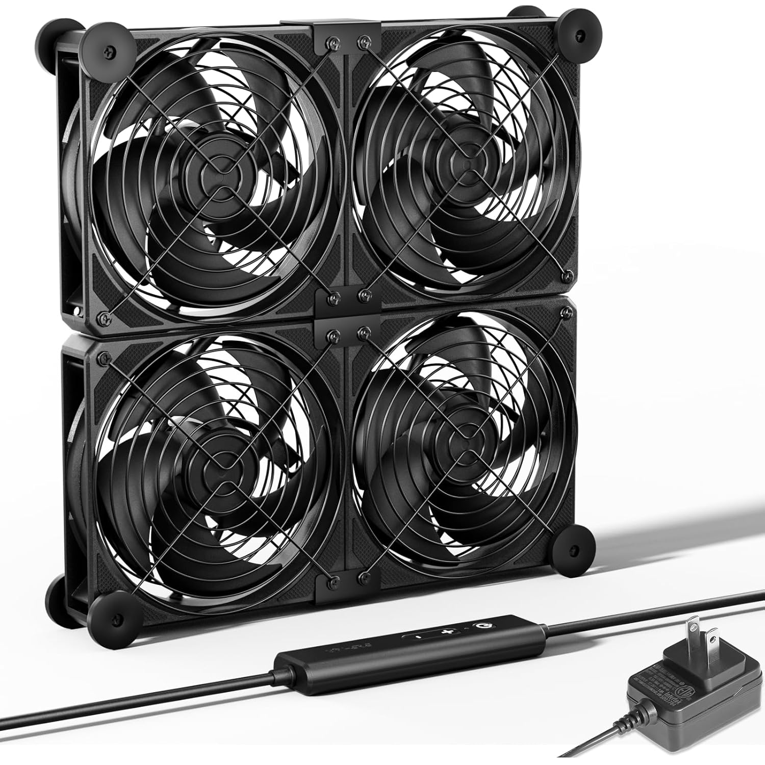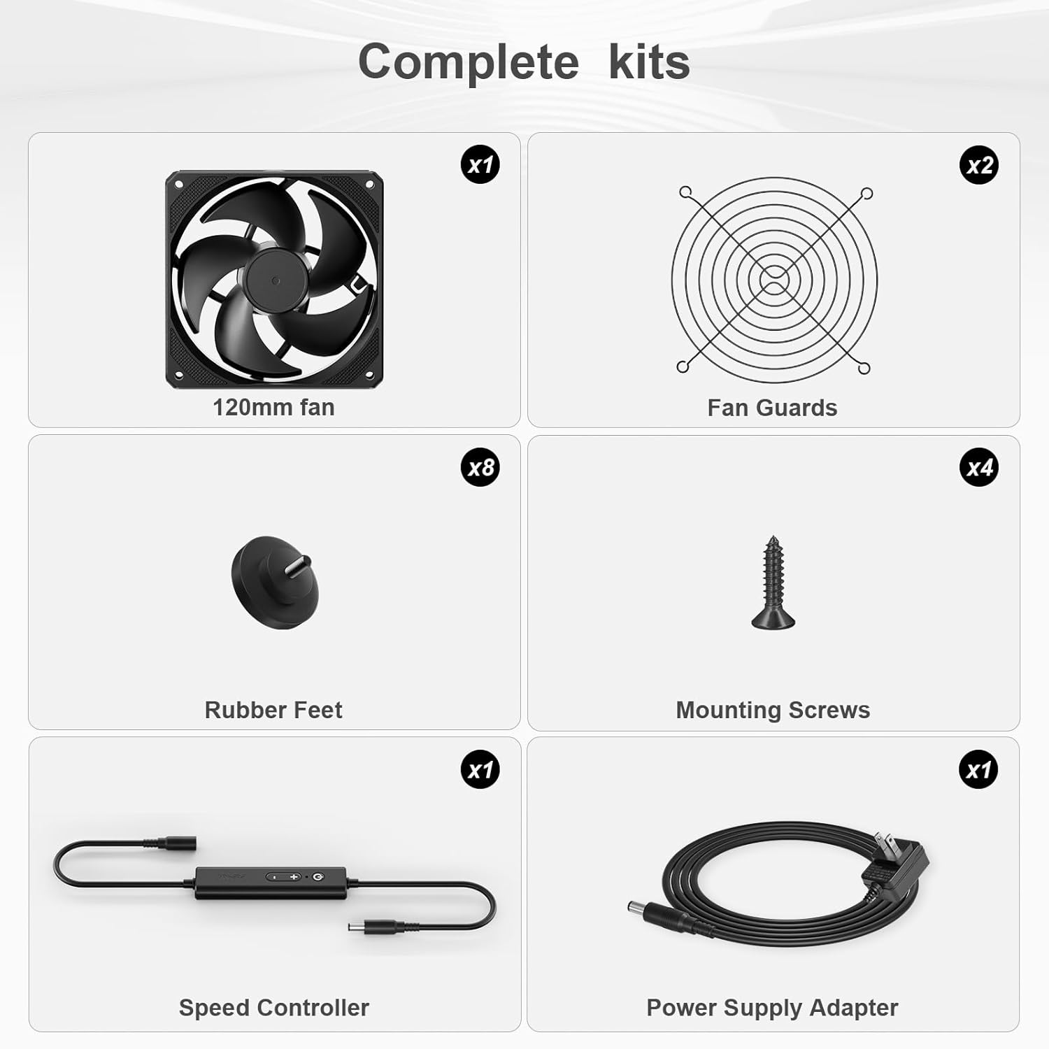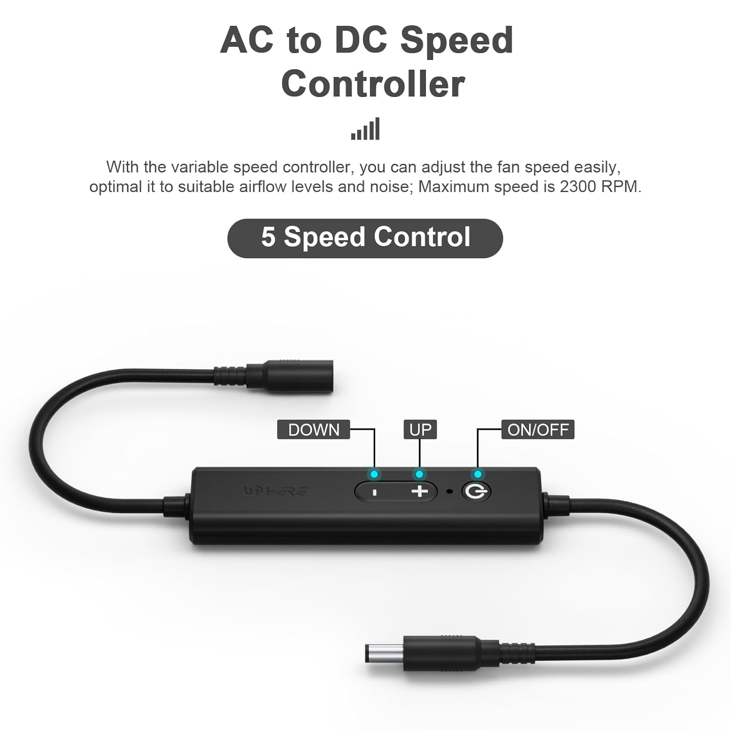 upHere High Airflow 120mm X 25mm Computer Fan with 12V DC Power Supply, 5 Level Speed Controller, for PC,PS5, Mining Machine Chassis Server Workstation Cooling