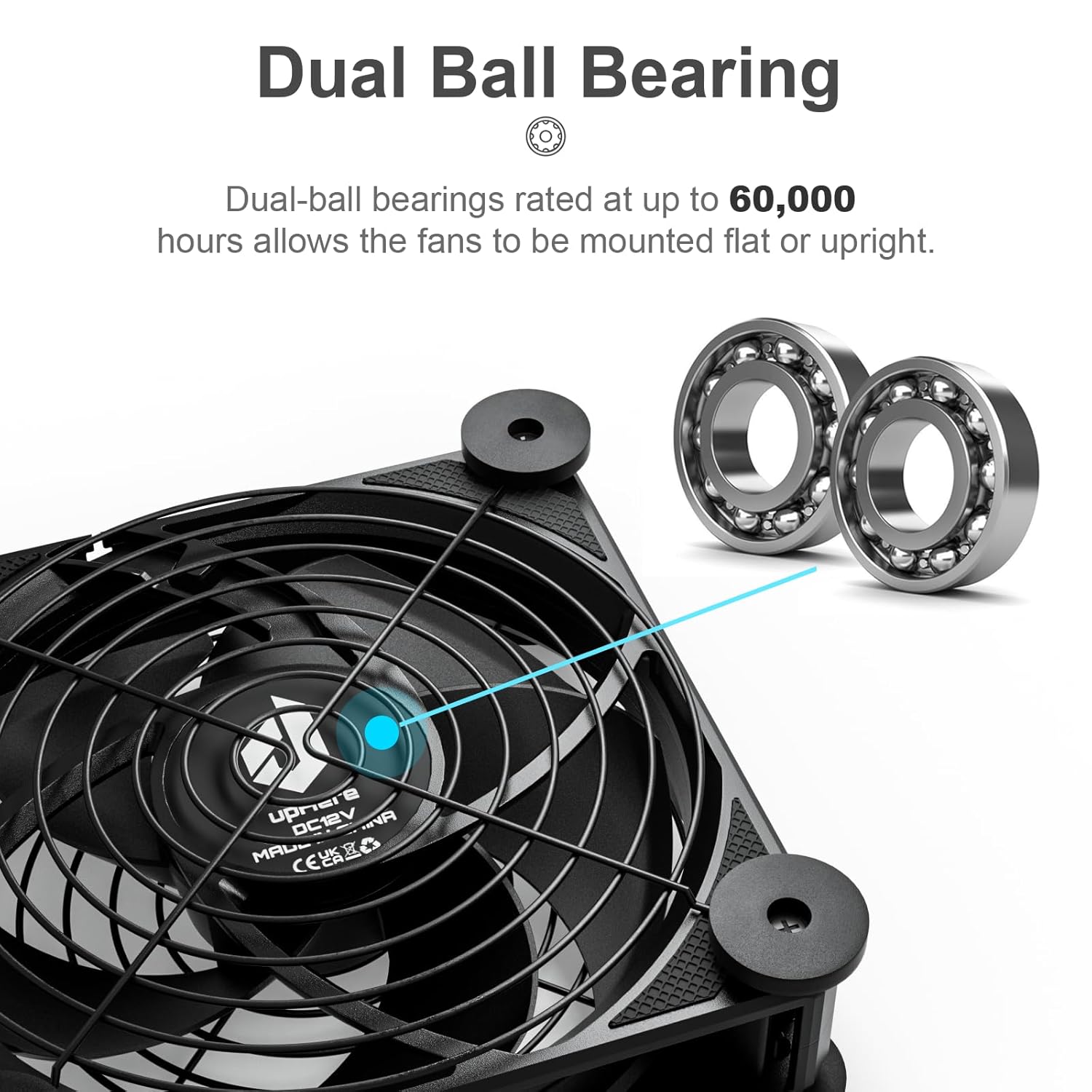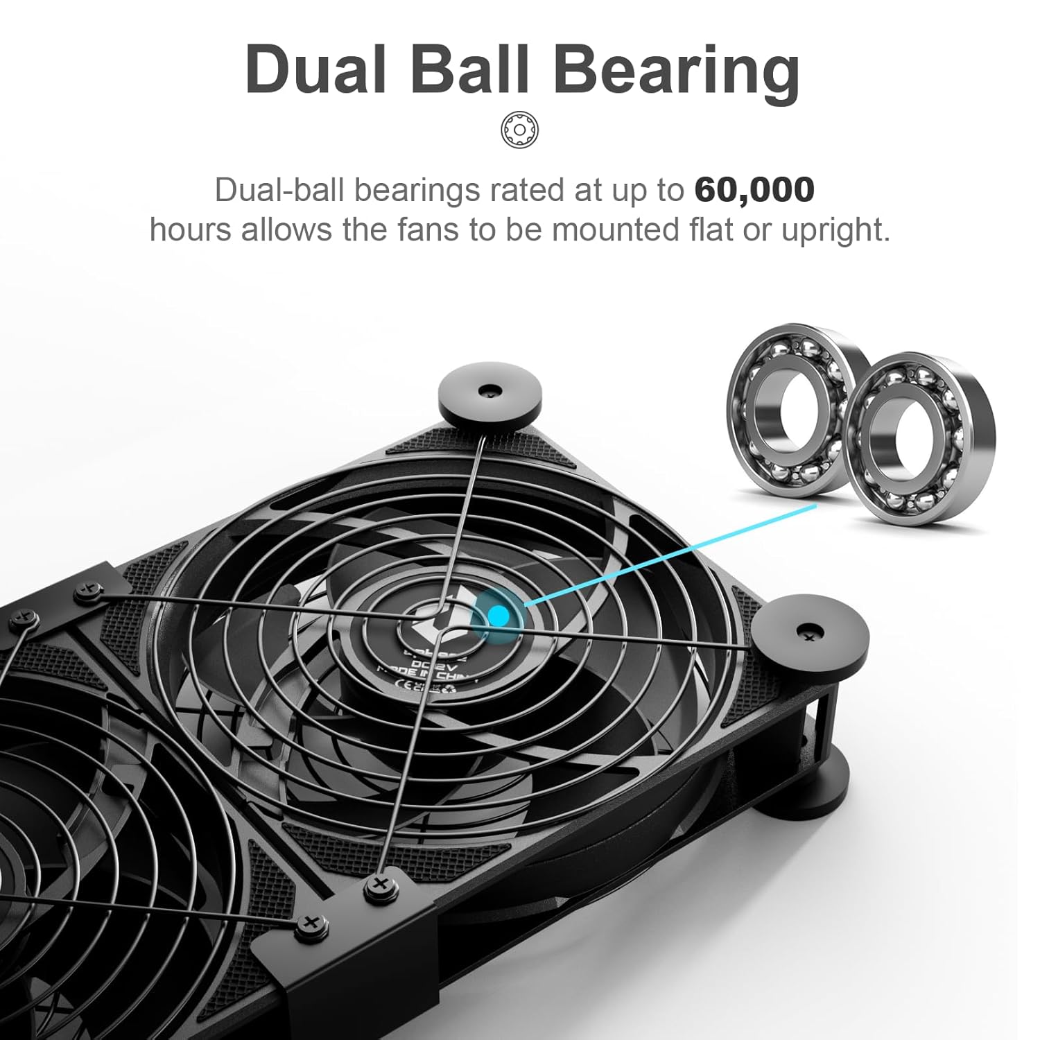 【Dual Ball Bearing】Engineered with advanced blade design and quality dual ball bearings,our fan delivers exceptional airflow, ensuring superior cooling performance to keep your devices running at optimal temperatures.