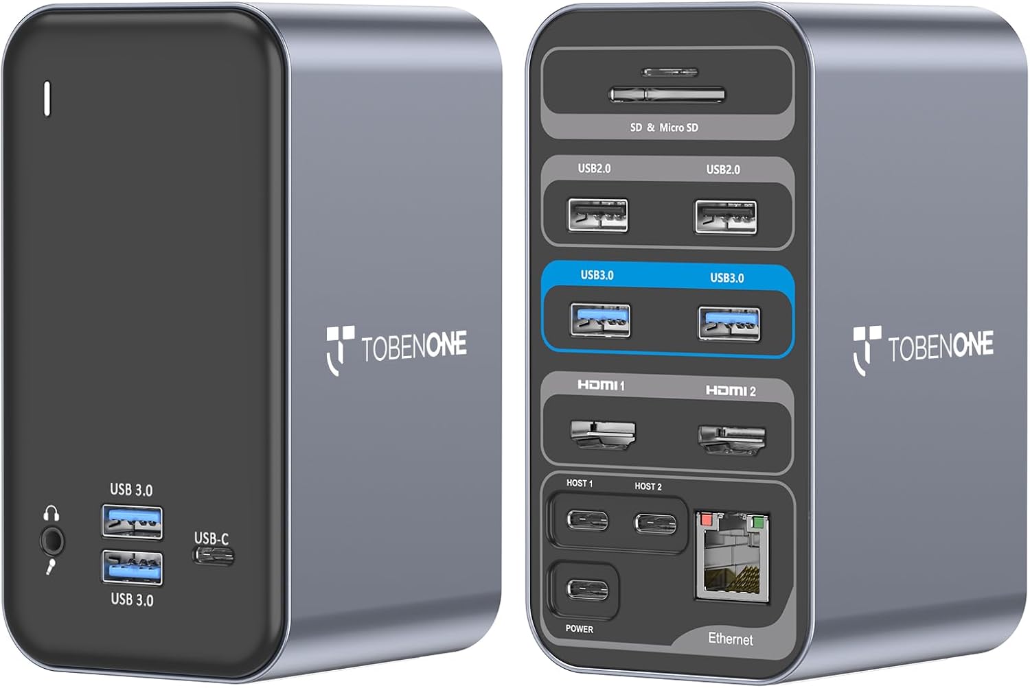 USB C Docking Station Dual 4K Monitor, TOBENONE Laptop Docking Station for MacBook Pro/Air, 15 in 2 USB-C Dock with 2 HDMI Port, 7 USB, SD&Micro SD, Gigabit Ethernet, 87W PD 3.0, Audio/Mic