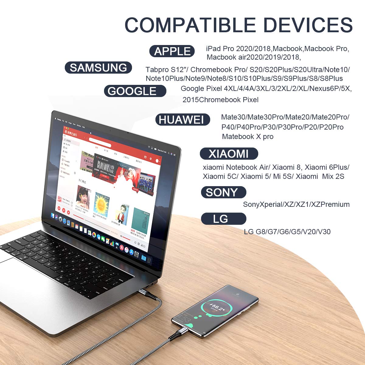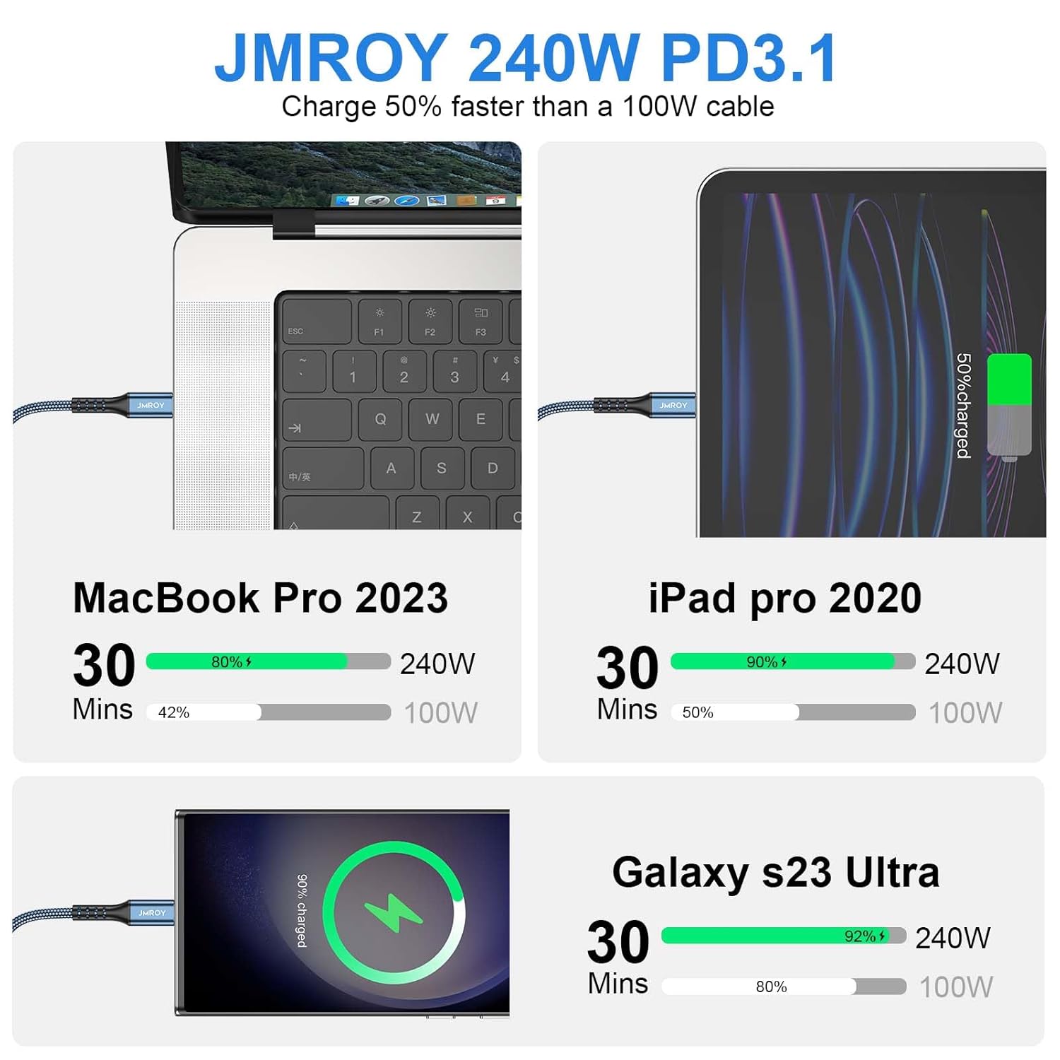 USB C to USB C Charger Cable 240W [2Pack 6FT] Type C Cable Fast Charge for MacBook, iPhone 15/Pro/Plus/Max, MacBook Pro/Air, Samsung Galaxy S23, Google Pixel