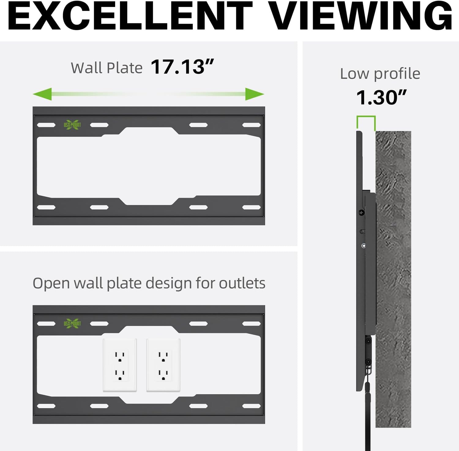 SPACE SAVING: This wall mount tv bracket can get your TV as close as 1.3" to the wall creating a low profile modern and professional look for your home and office.