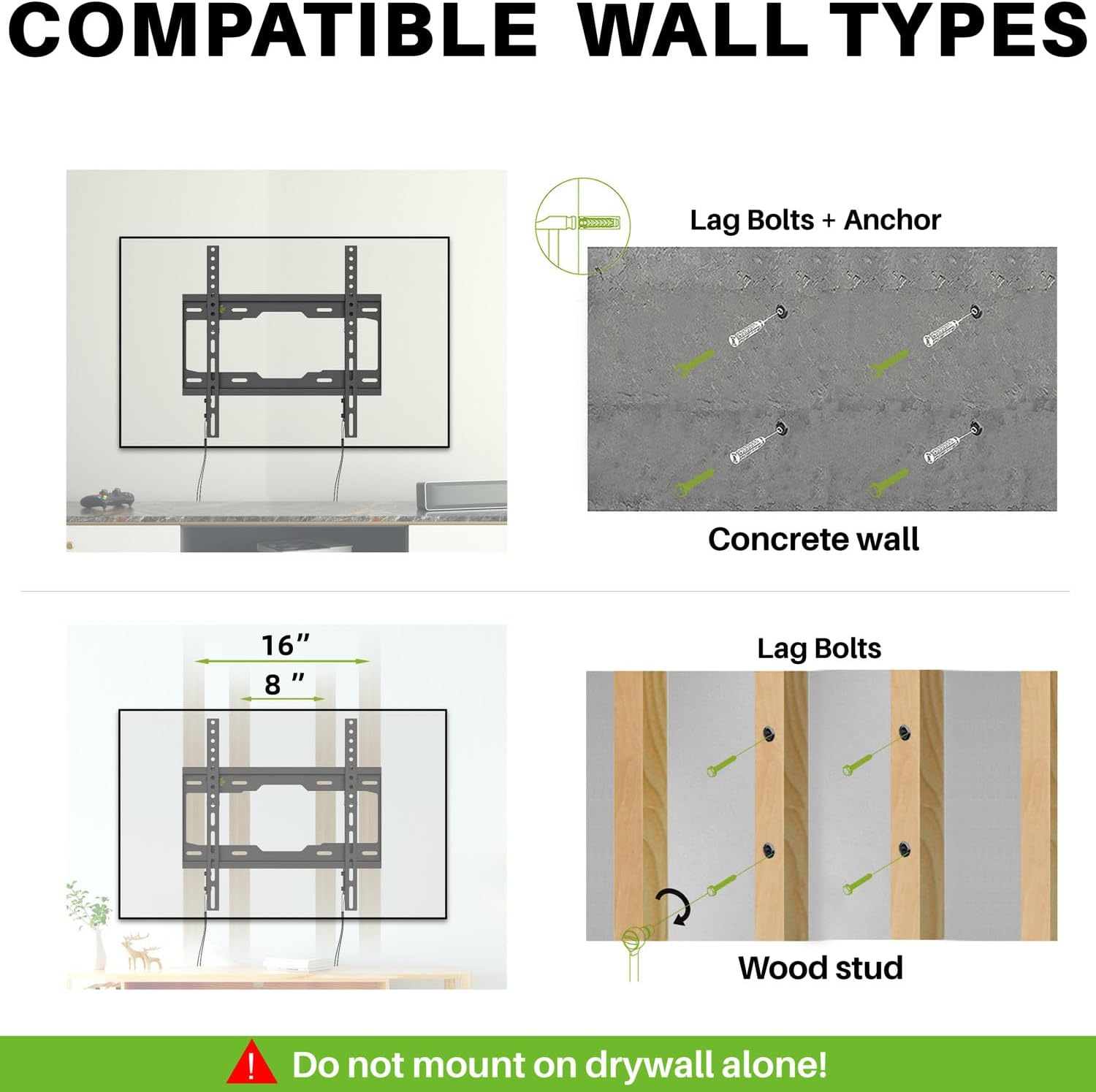 USX MOUNT Fixed TV Wall Mount with Low Profile for Most 26-60" Flat Screen TVs, Wall Mount TV Bracket with VESA Up to 400x400mm and 99lbs Loading, TV Mount Fits 8", 16" Wood Studs XFM090