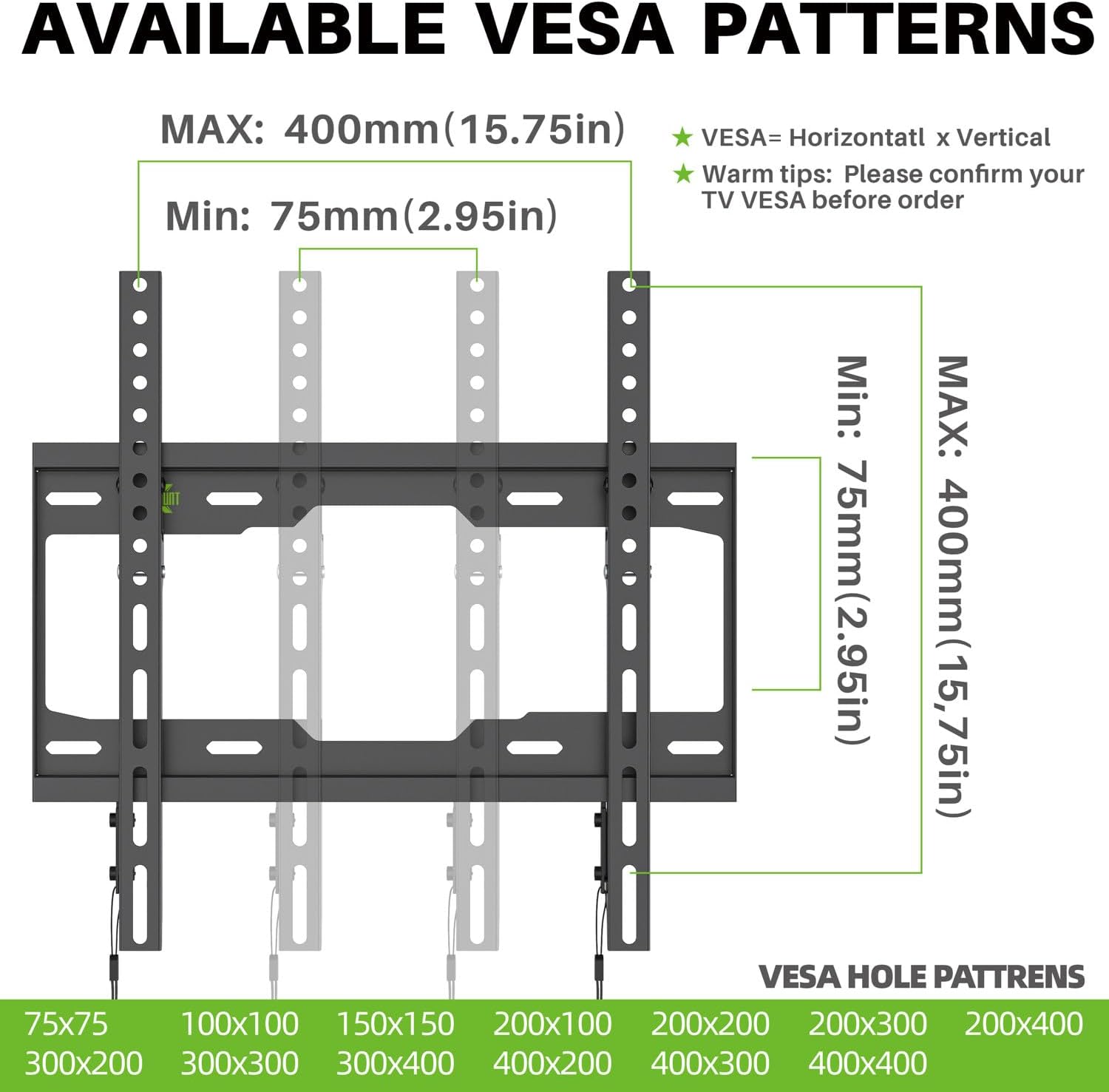 UNIVERSAL DESIGN: This TV Wall Bracket fit most 26-60" TVs up to 99lbs, with VESA 75x75 to 400x400mm/mounting holes spacing.