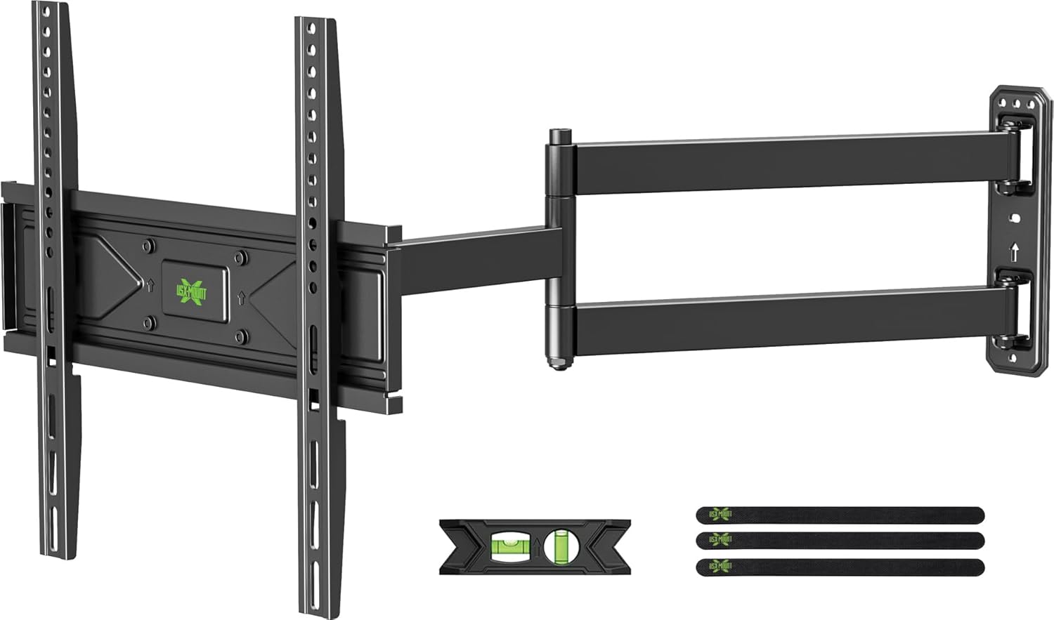 - SPACE SAVING: Articulating tv mount can retract 2.38 inch from the wall in home position to save space and also extends up to a maximum 14.04 inch from the wall, cable strap included to manage TV cables, perfect for creating a clean, minimalist look in your living space.
