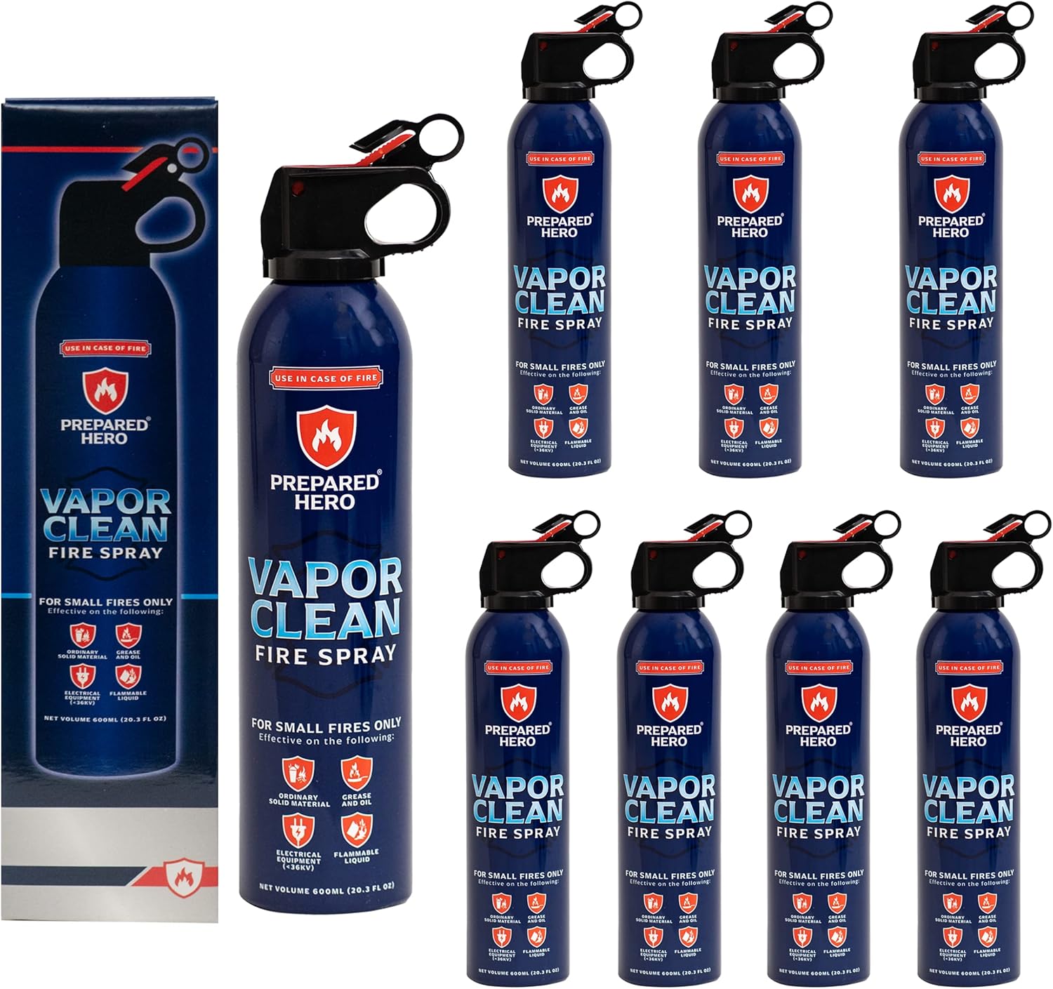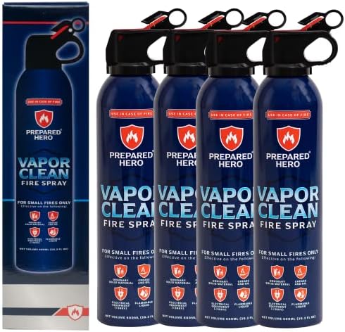 Vapor Clean Fire Spray by Prepared Hero - 8 Pack - Portable Fire Extinguisher for Home, Car, Garage, Kitchen - Works on Electrical, Grease, Battery Fires & More - Compact, Easy to Use
