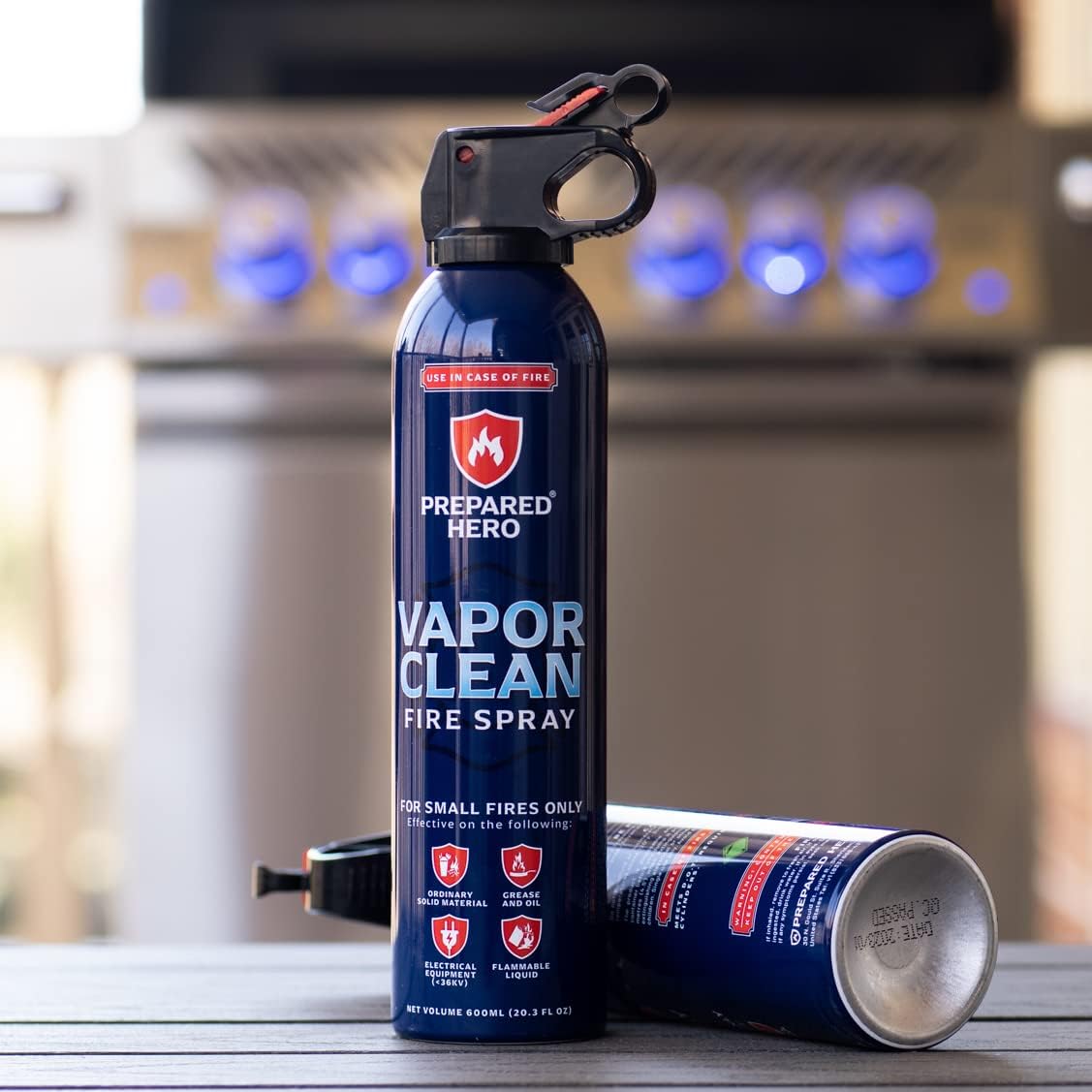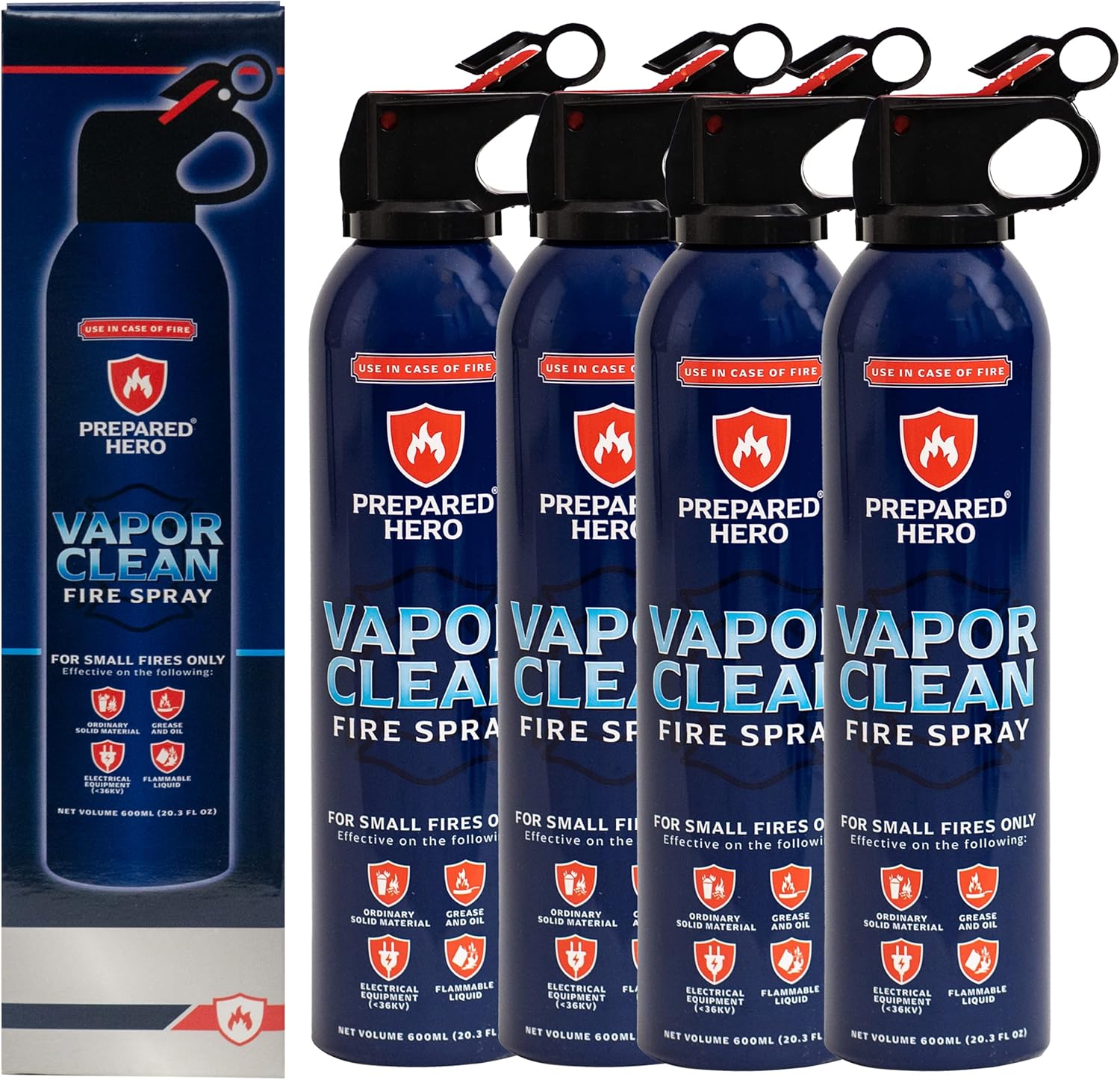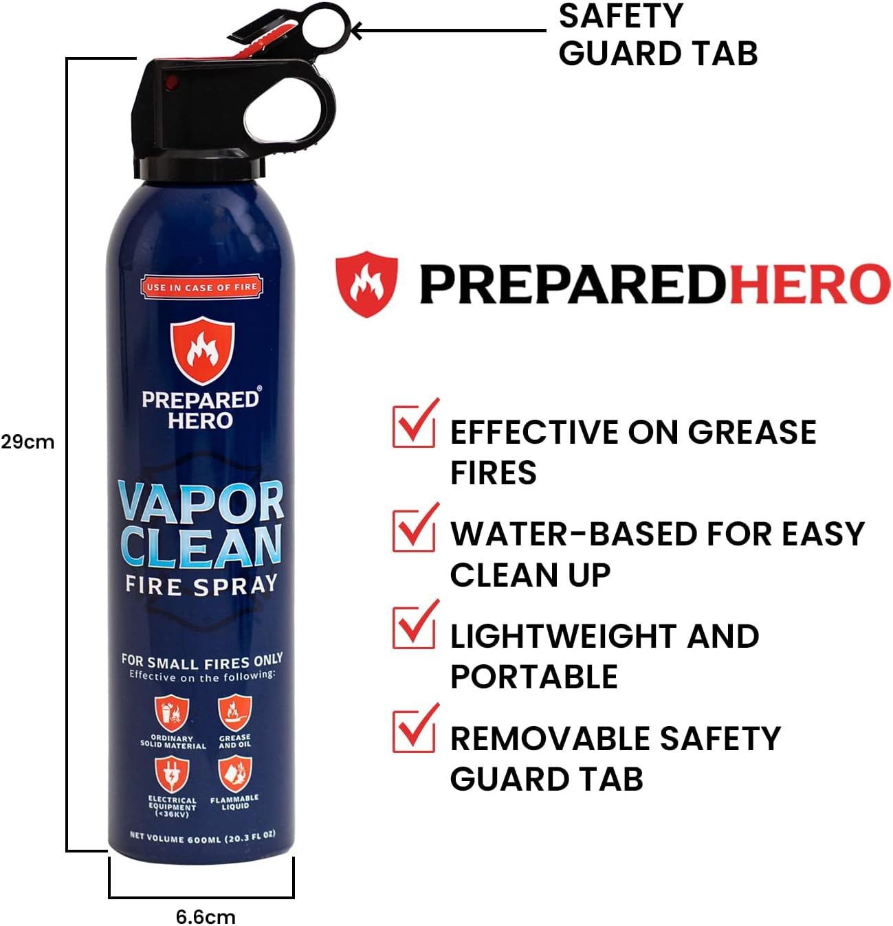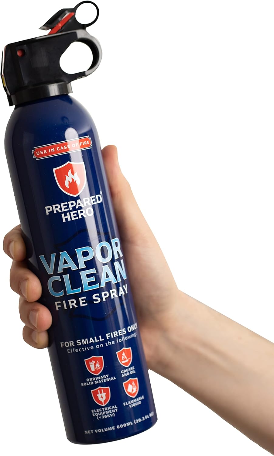 - Prepared Hero's Vapor Clean Fire Spray discharges 20.3 fl oz's of water-based fire extinguishing formula.