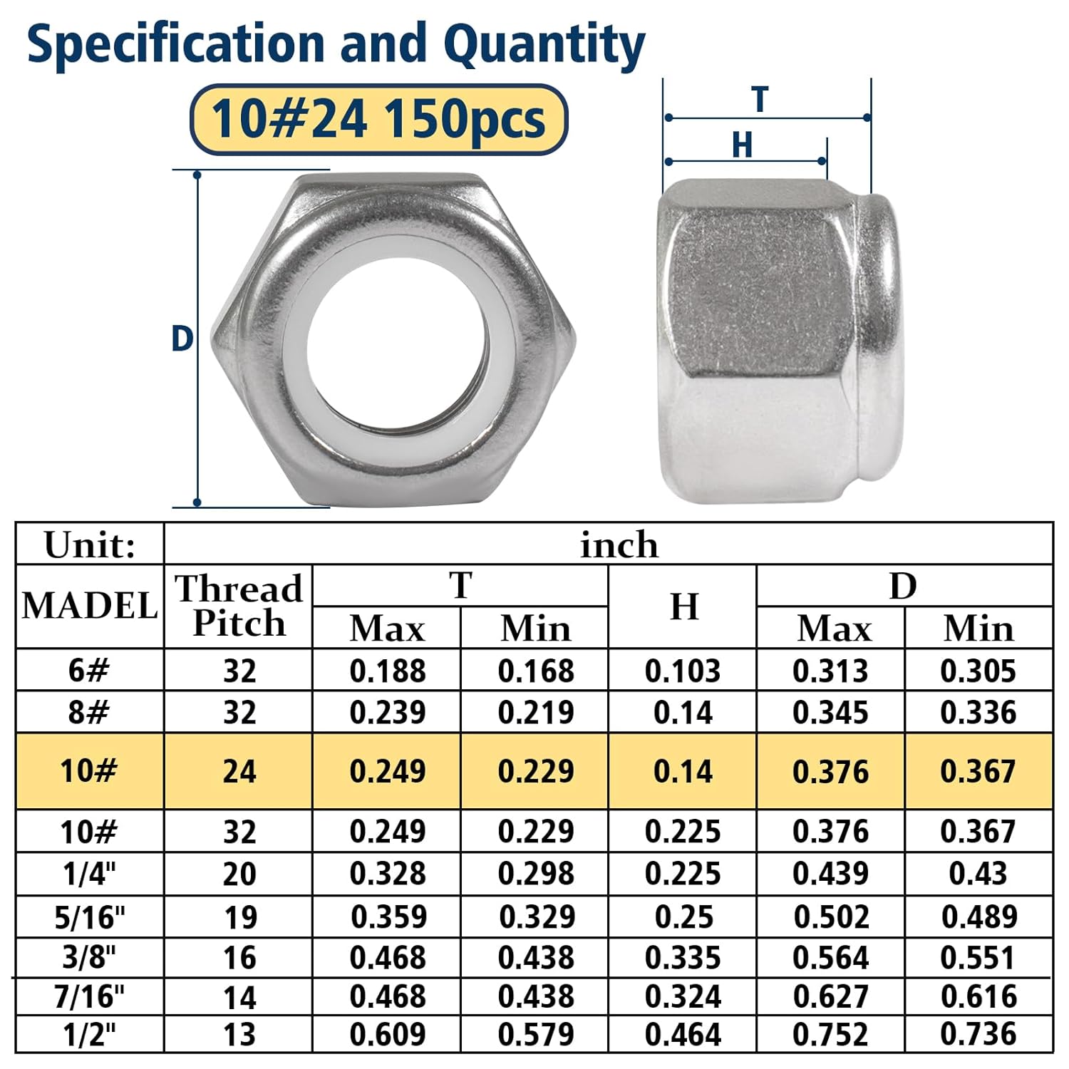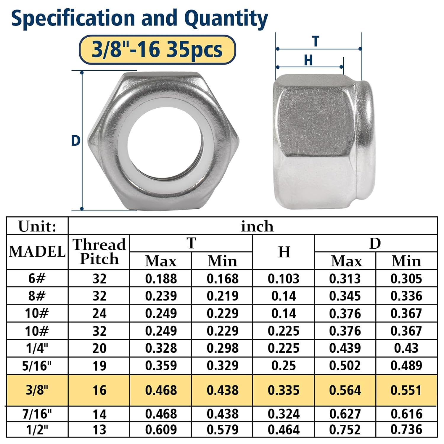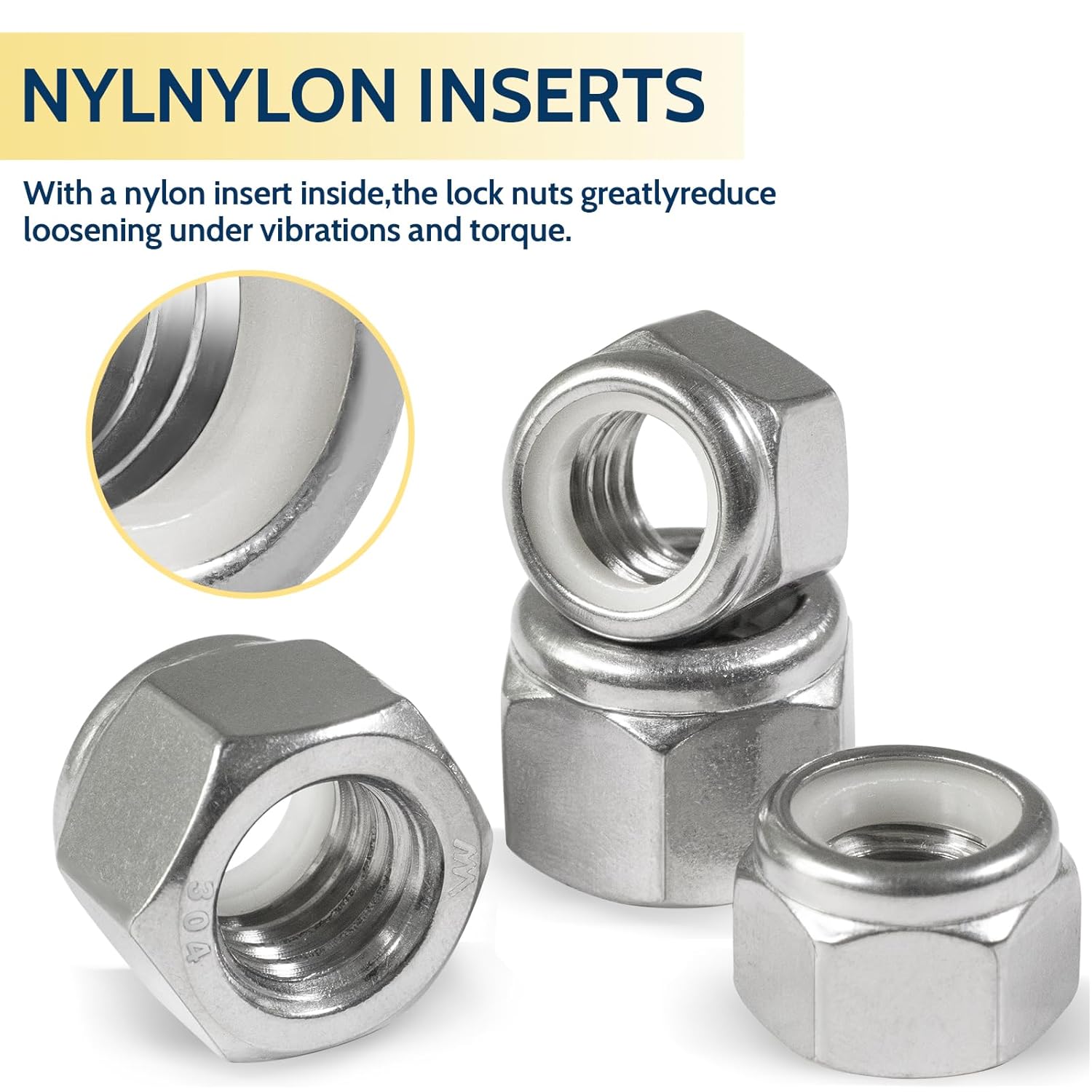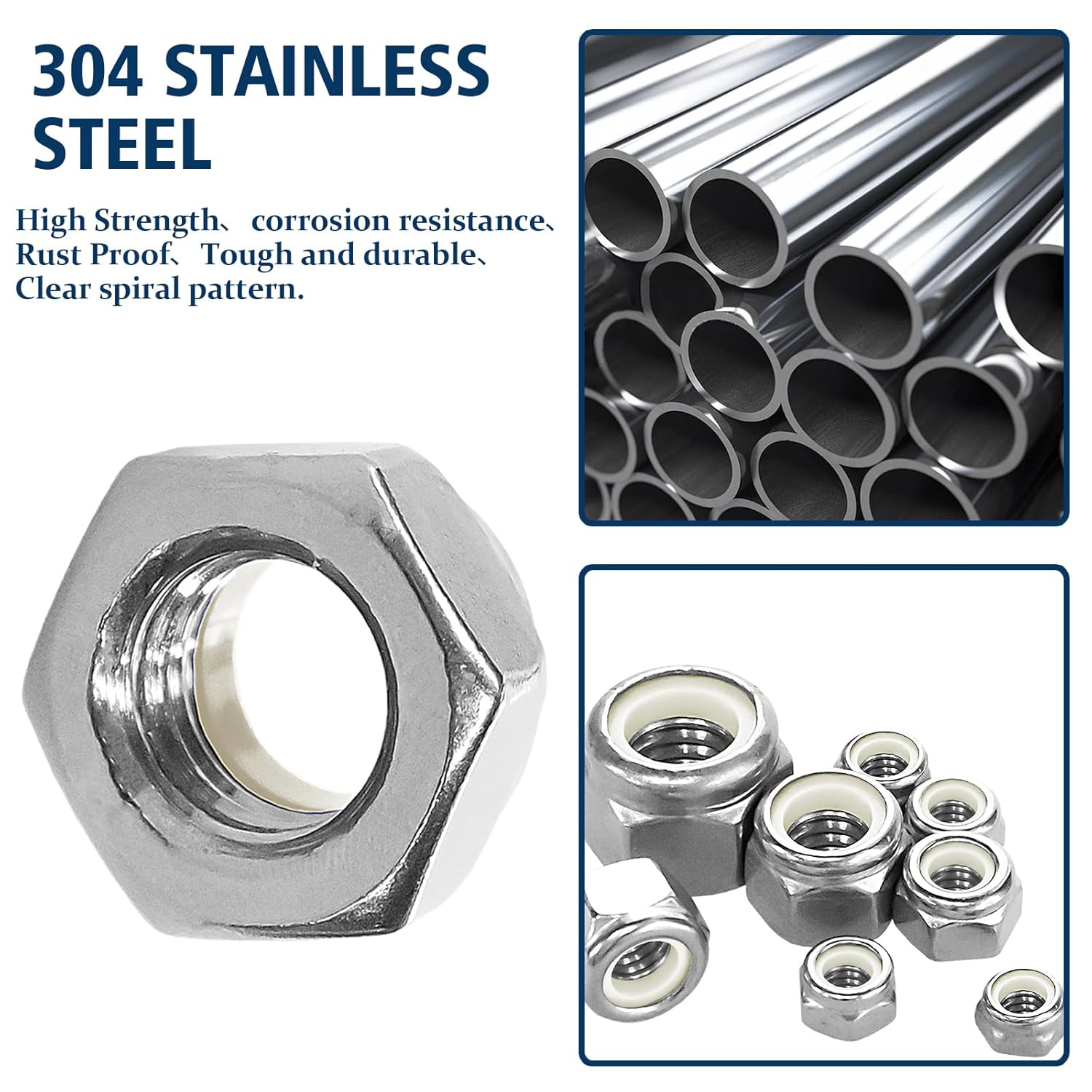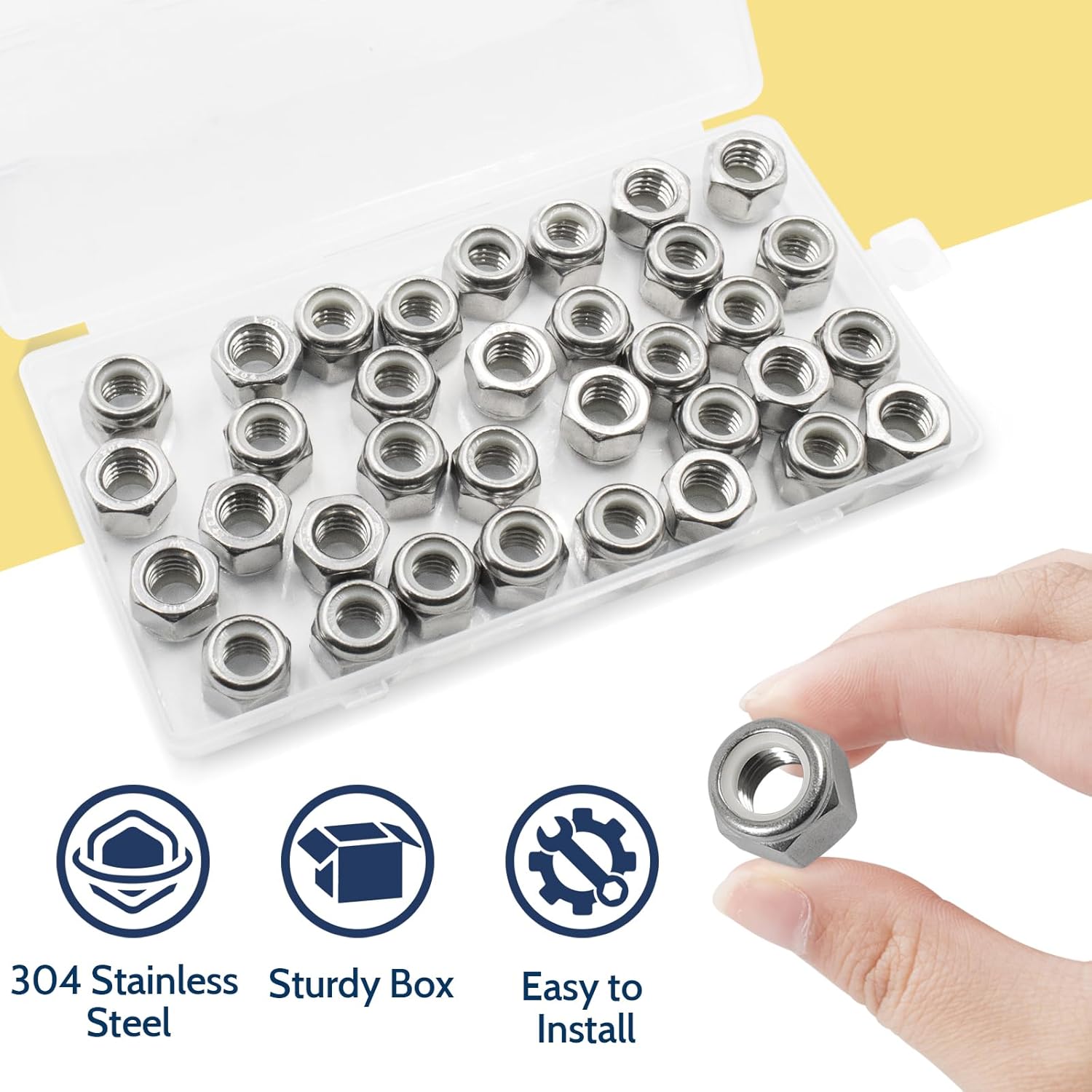 【Package Content】Set of 35 piece imperial 304 (18-8) stainless nylon insert lock nuts.