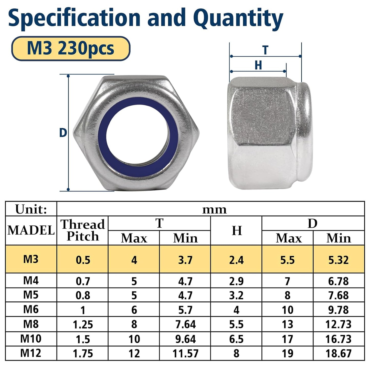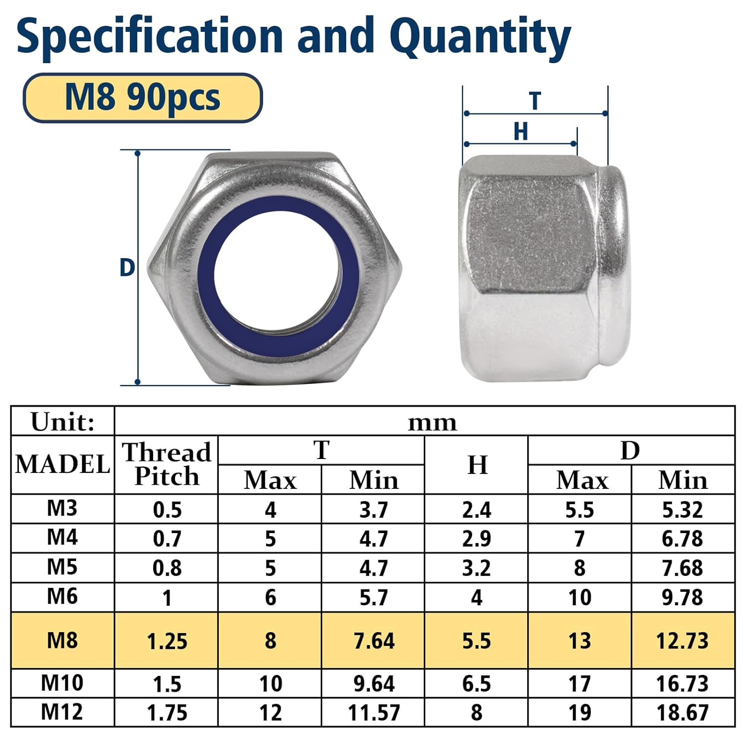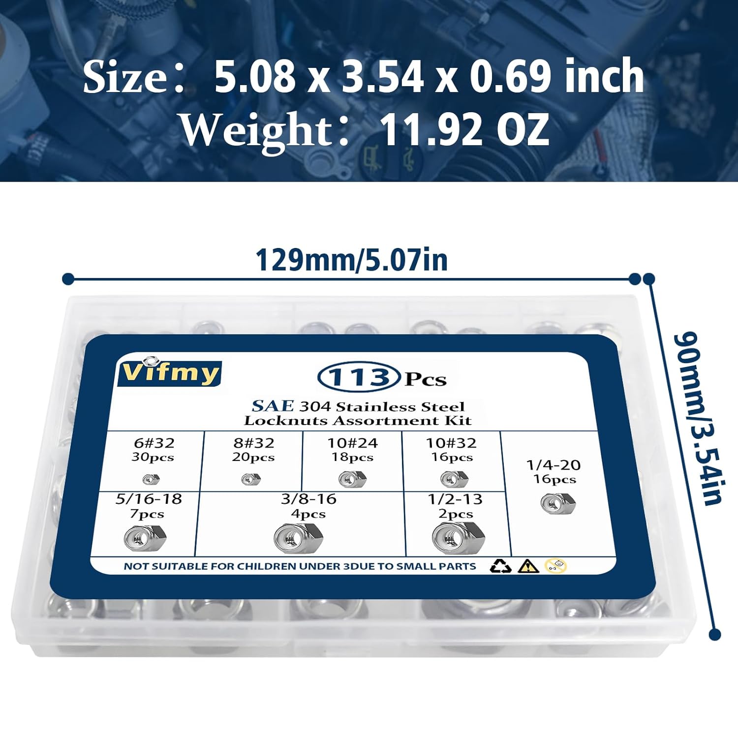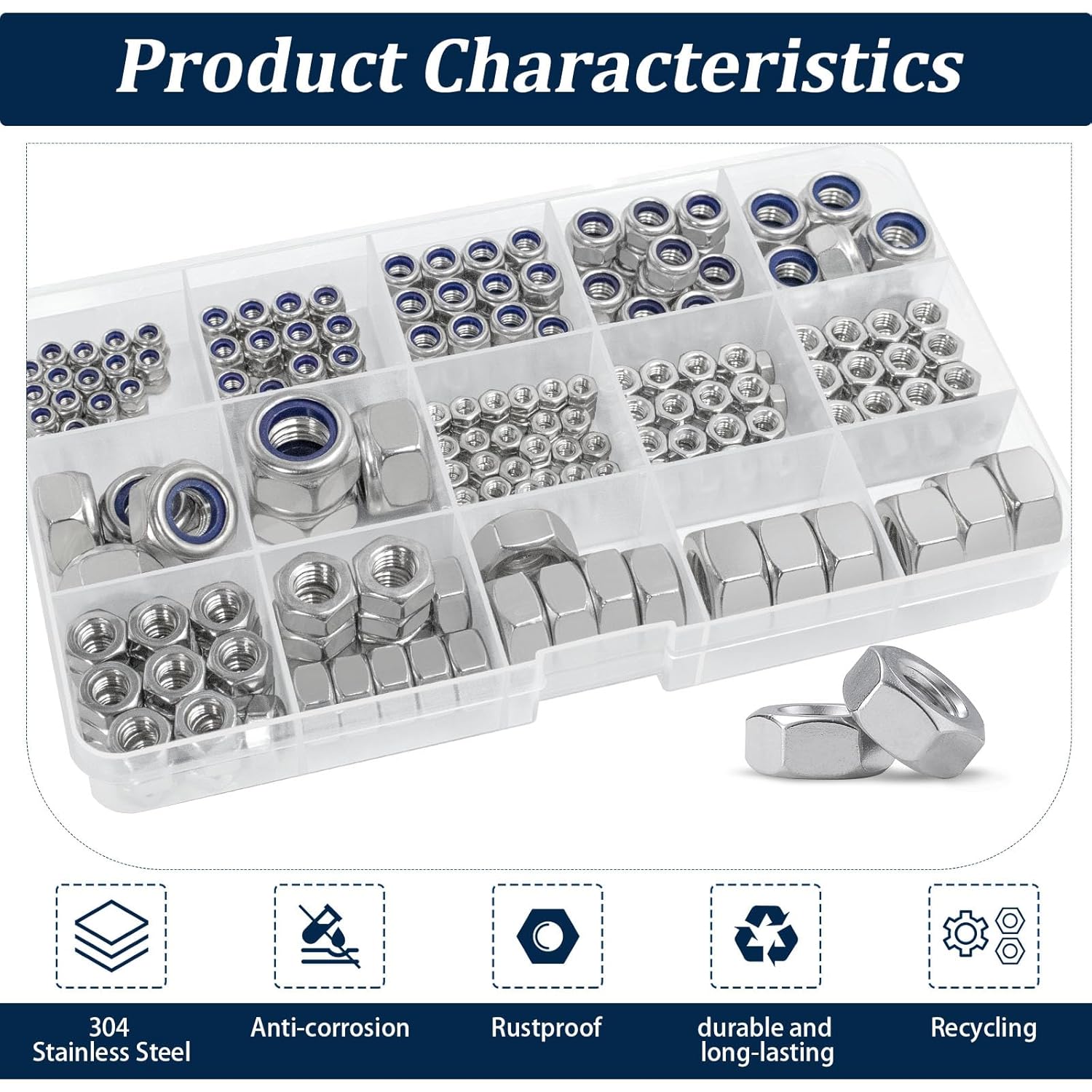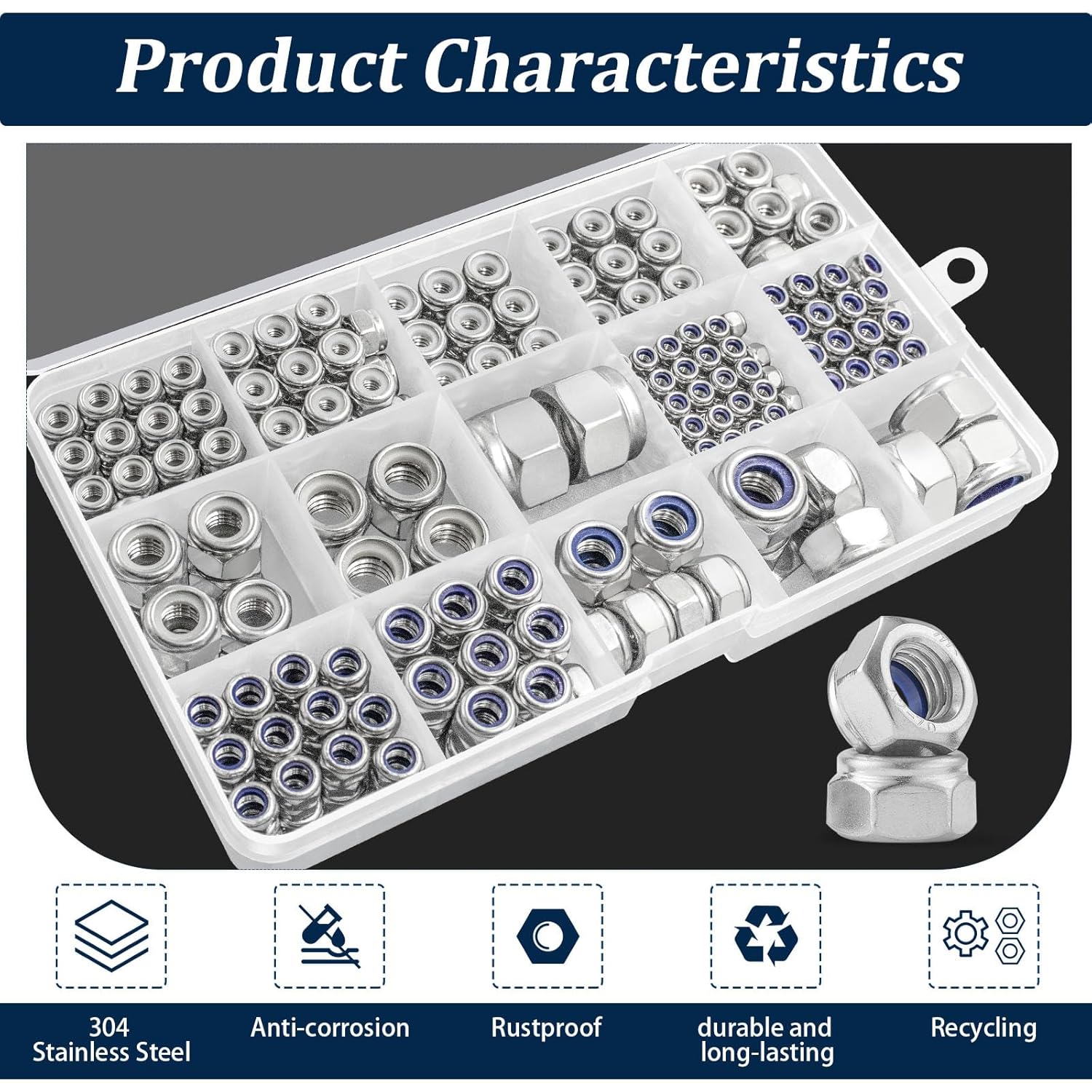 【Package Content】Set of 35 piece imperial 304 (18-8) stainless nylon insert lock nuts.