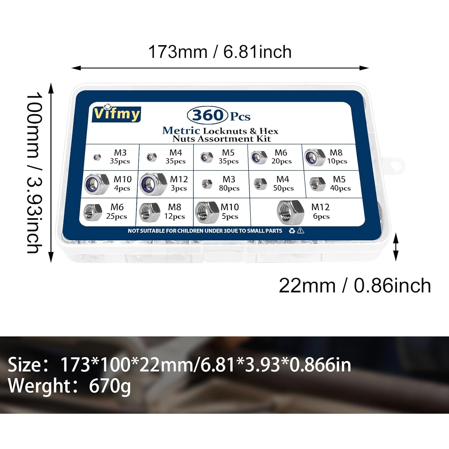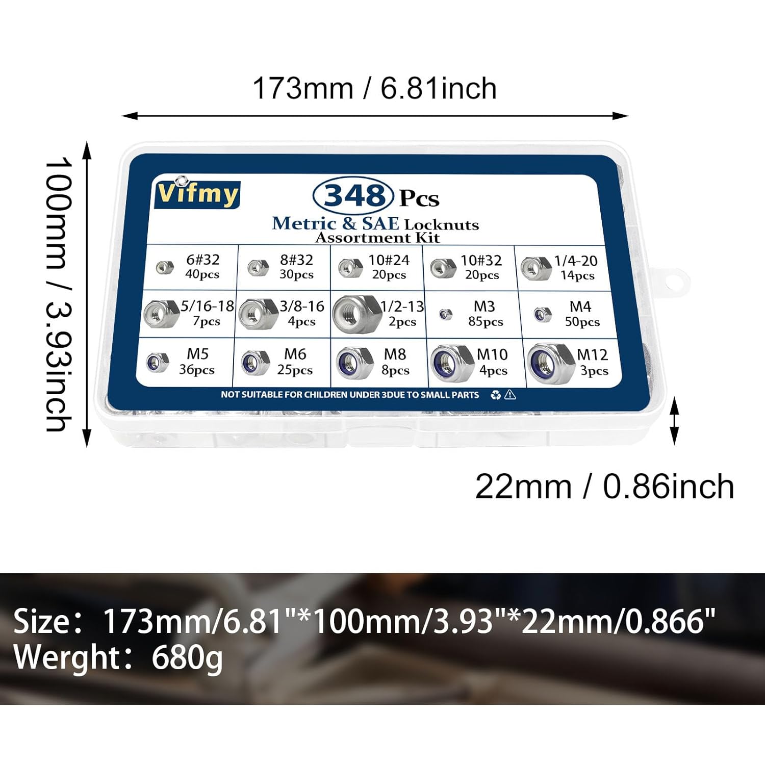 【Convenient storage】Sae locknuts are individually stowed by type in an easy to carry clear case.Easy to store and use,so that the lock nuts will not be lost or mixed up during use.
