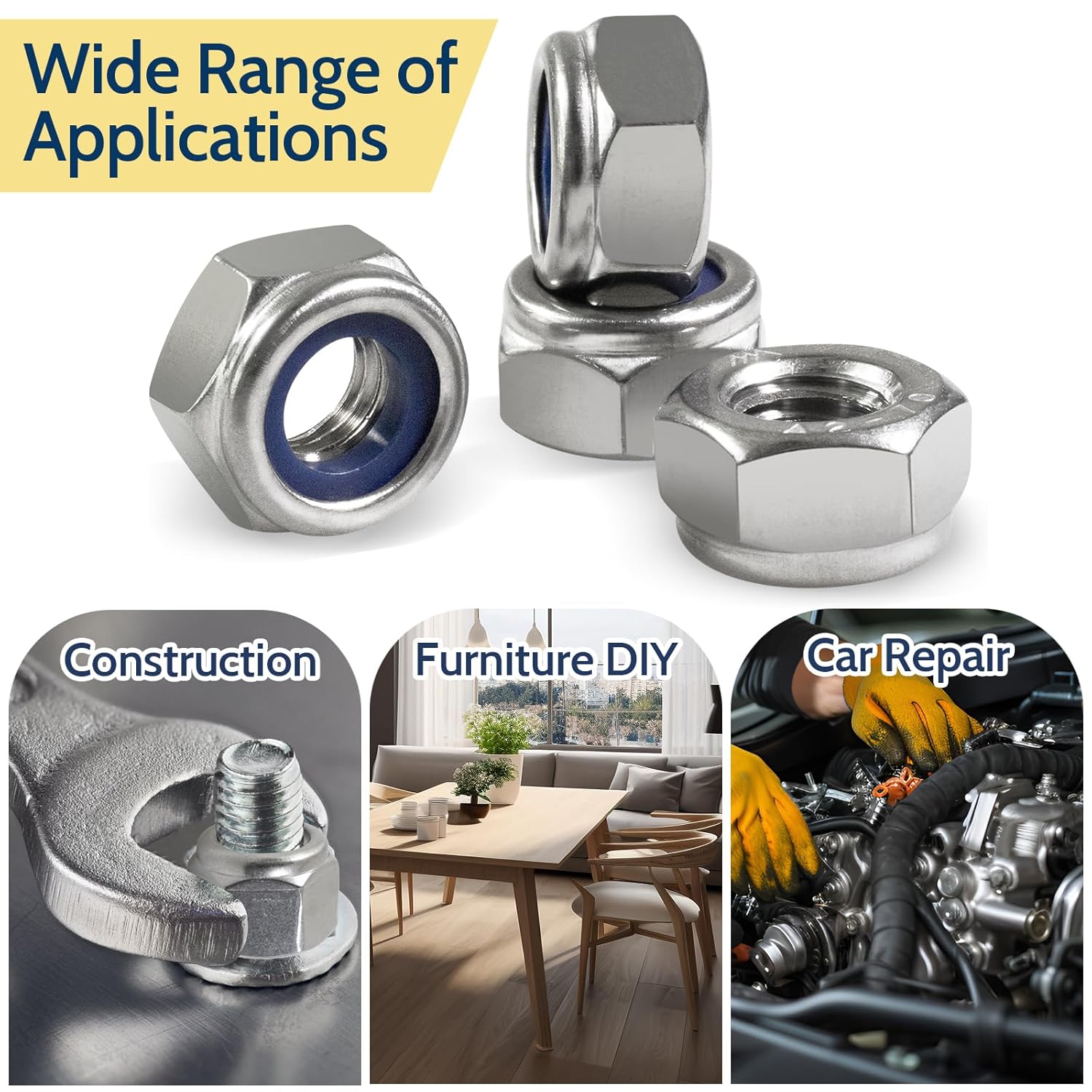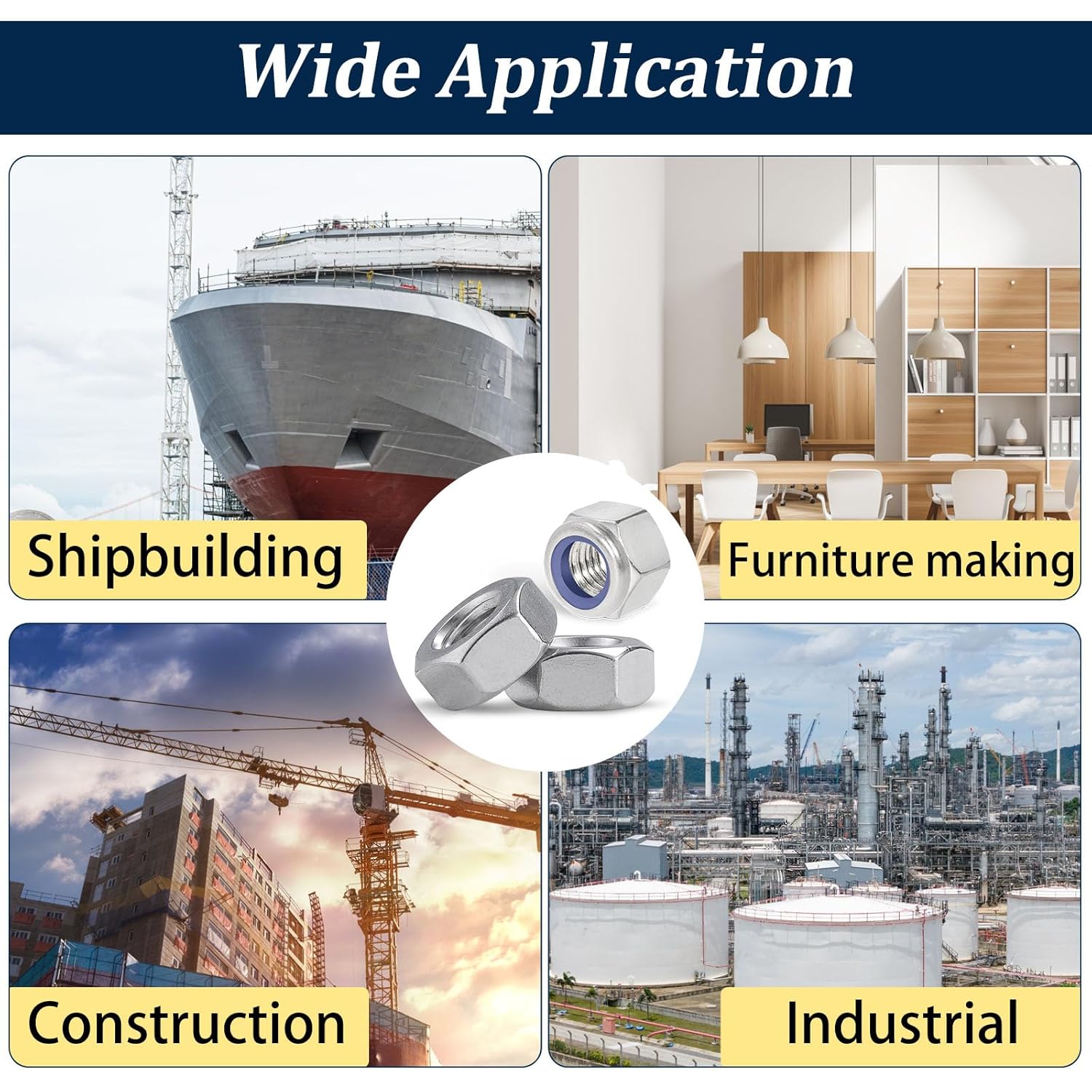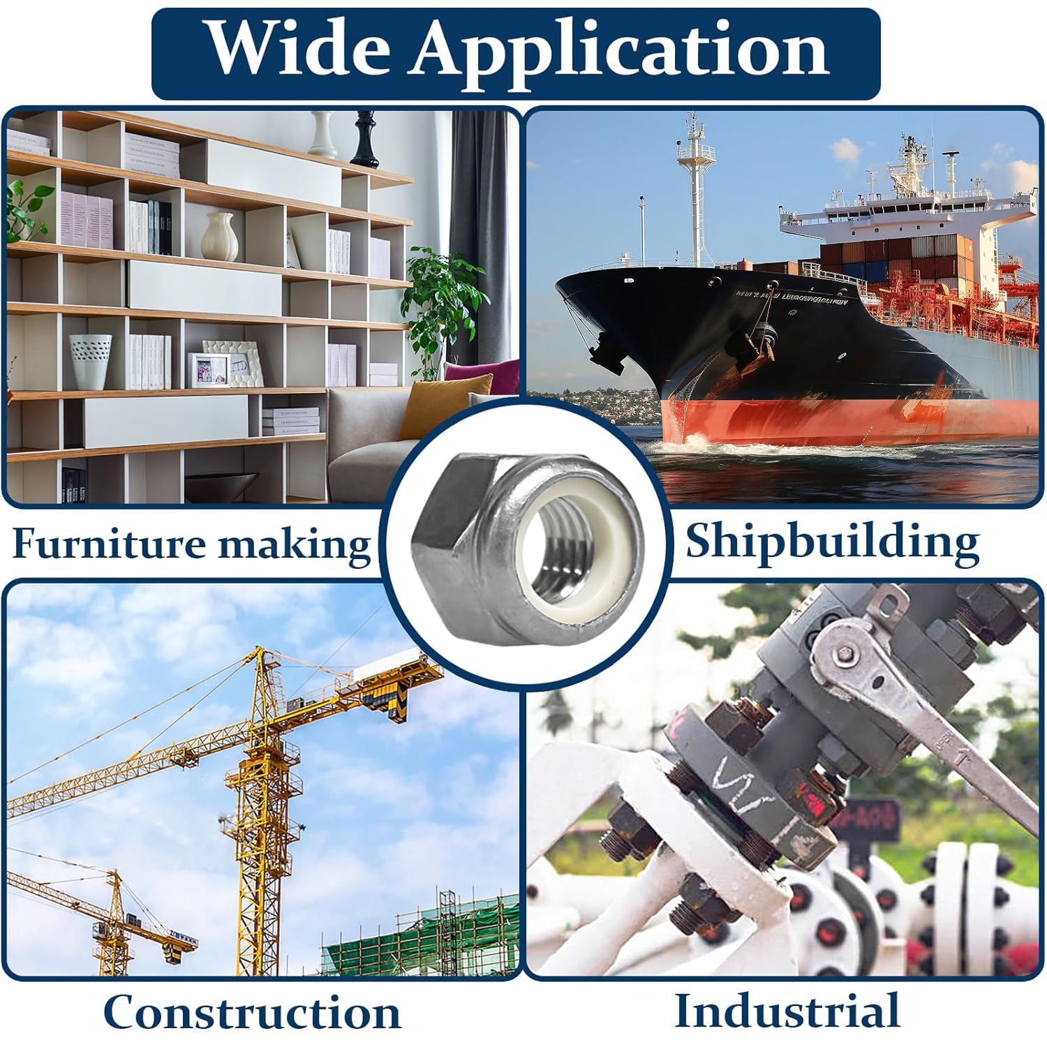 【Wide Application】Common uses for inch hardware nuts include securing instrument and equipment components, linking pipes and structural elements.Suitable for use or maintenance in a wide range of applications such as furniture decoration, automotive repair, the mechanical industry and small repairsaround shops, construction, etc.