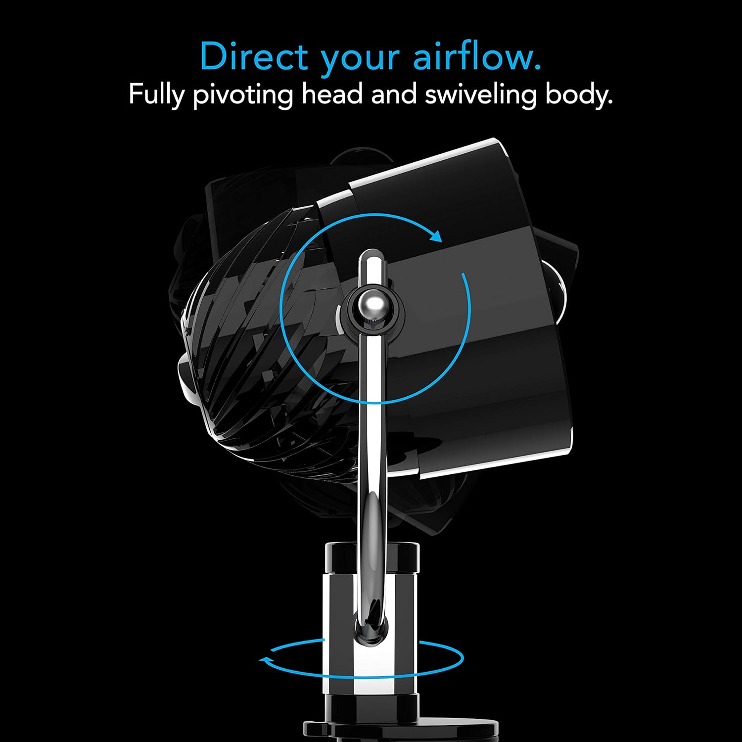 MULTI-DIRECTIONAL AIRFLOW — With 3 speed settings and a 360-degree adjustable axis, you can easily adjust the level, and direction, of cooling comfort you need at your desk.