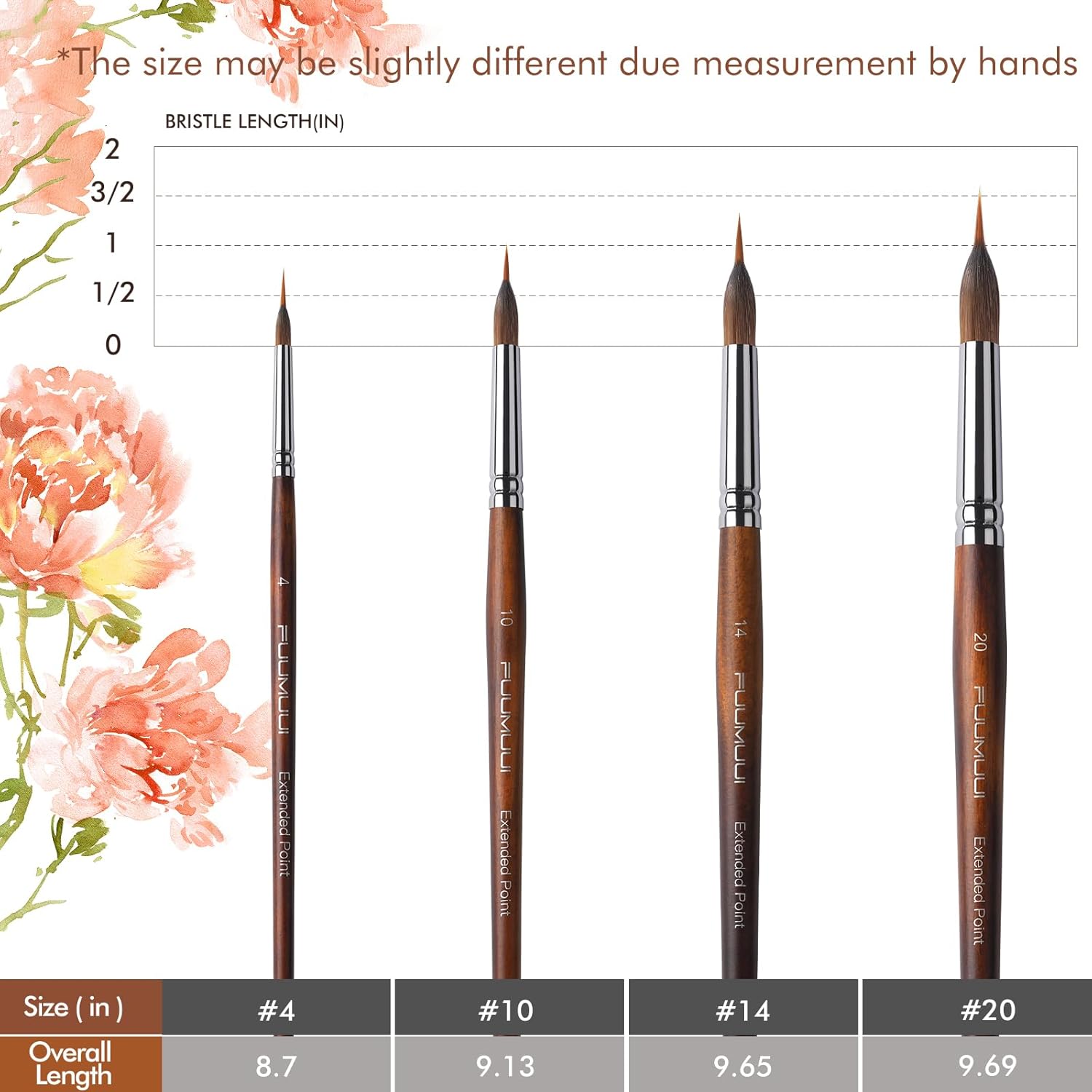 Watercolor Brushes Professional, Fuumuui 4Pcs Extended Needle Point Brushes Synthetic Extra Long Pinhead Brushes with Sable Body for Fine Detailing - Watercolor Acrylic Gouache Inks PaintingPL17-B0DZ5S1J4D