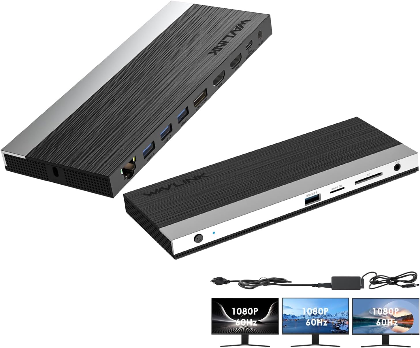 WAVLINK 4K USB-C Docking Station with 100W Power Delivery, Triple Display with Dual HDMI, Displayport, USB 3.0, Ethernet, Micro SD/SD Card Reader, Audio Mic Jack, Universal Dock for Windows & MacPL51-B09ZXC4M1J