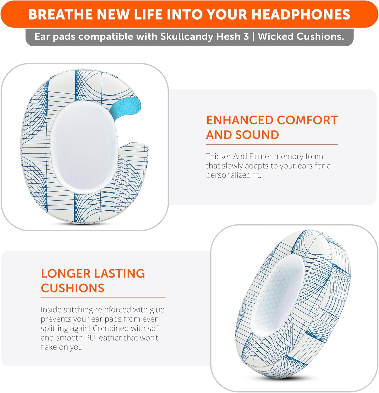 Rugged Durability: To improve the longevity of your Skullcandy Hesh Evo, Hesh 3, or Crusher headphones, we added reinforced stitching and upgraded PU leather to these replacement earpads. The durability of your Skullcandy Hesh earpads is of extreme importance, Wicked Cushions earpads are made of the best quality materials to help you enjoy your headphones for as long as possible.