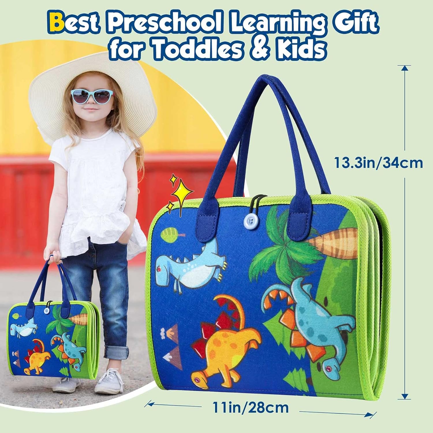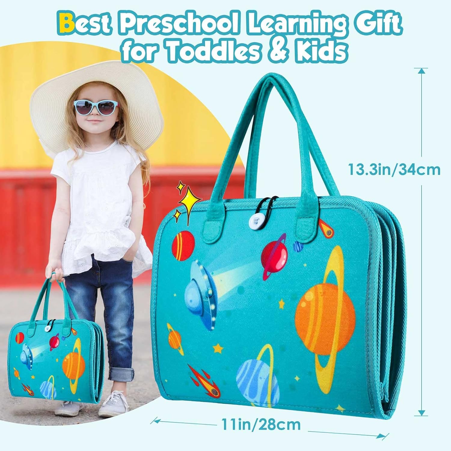 【Portable Toddlers Busy Book Toys for Travel】The sensory toddlers busy board toy is made of soft felt cloth and has no hard corners,safe for toddlers. It is very durable and all pieces are securely fixed. Its light and compact design is convenient for you to carry around, keep your kids playing and keeping quiet in the game or learning. a great choice for travel toy and toddler activities.