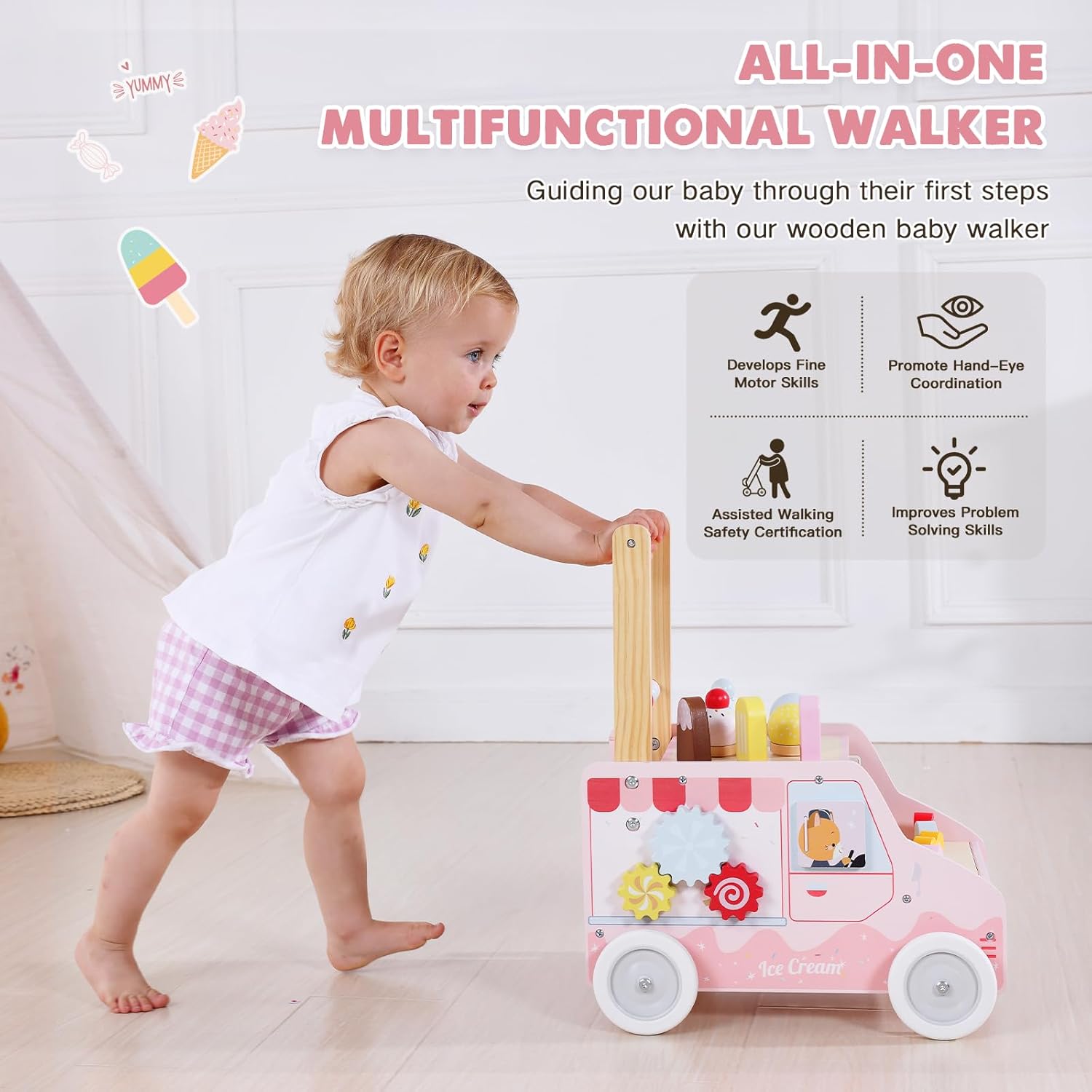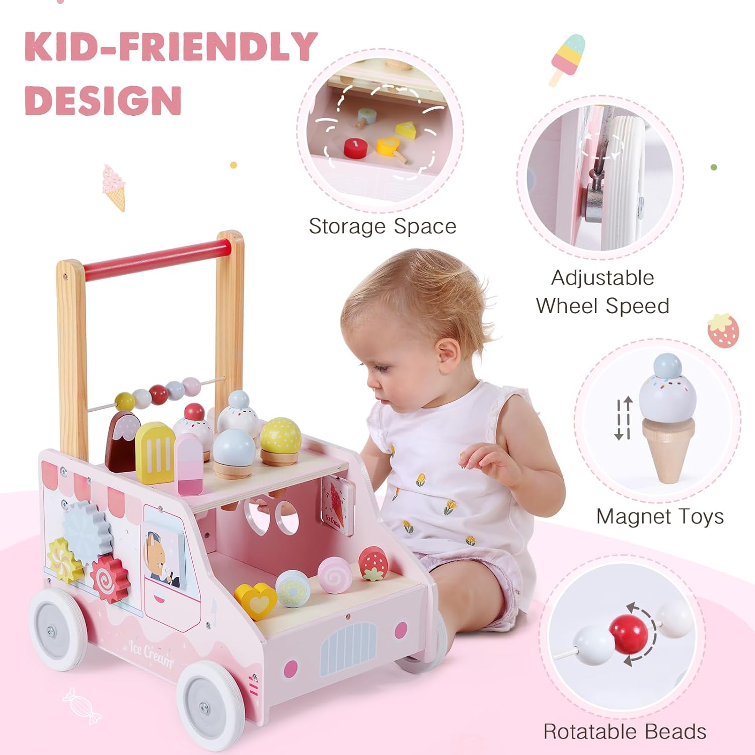 Wooden Baby Walker, Push Activity Walker Toys for Kids, Multifunctional Ice Cream Cart Activity Toy, Adjustable Speed Learning Walking, Birthday Gift for Boys&GirlsPL17-B0DMT3JW5B