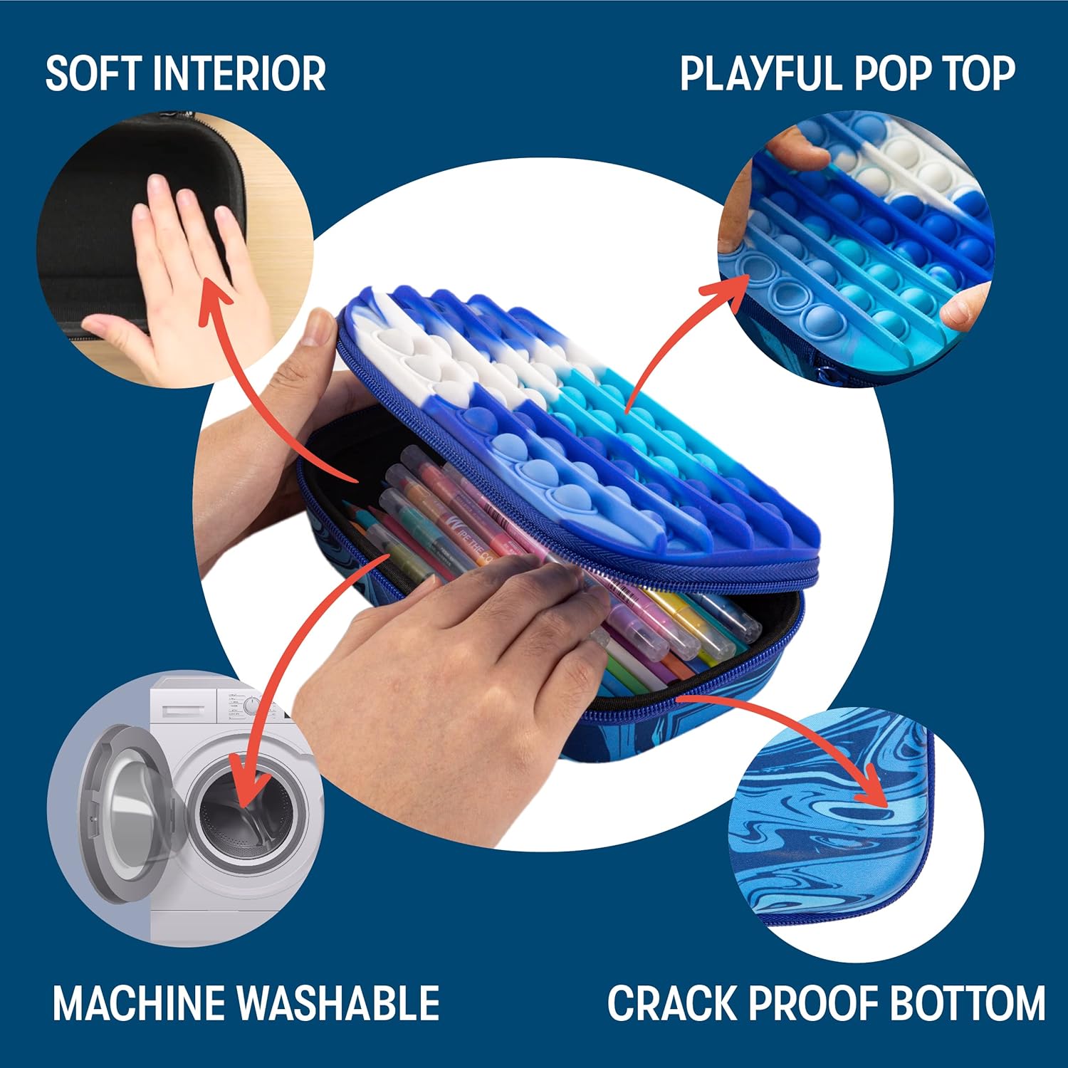 ZIPIT POP Pencil Box for Boys | Fidget Toy | Silicon Sensory Push It Case | Large Capacity Pencil Case (Blue)