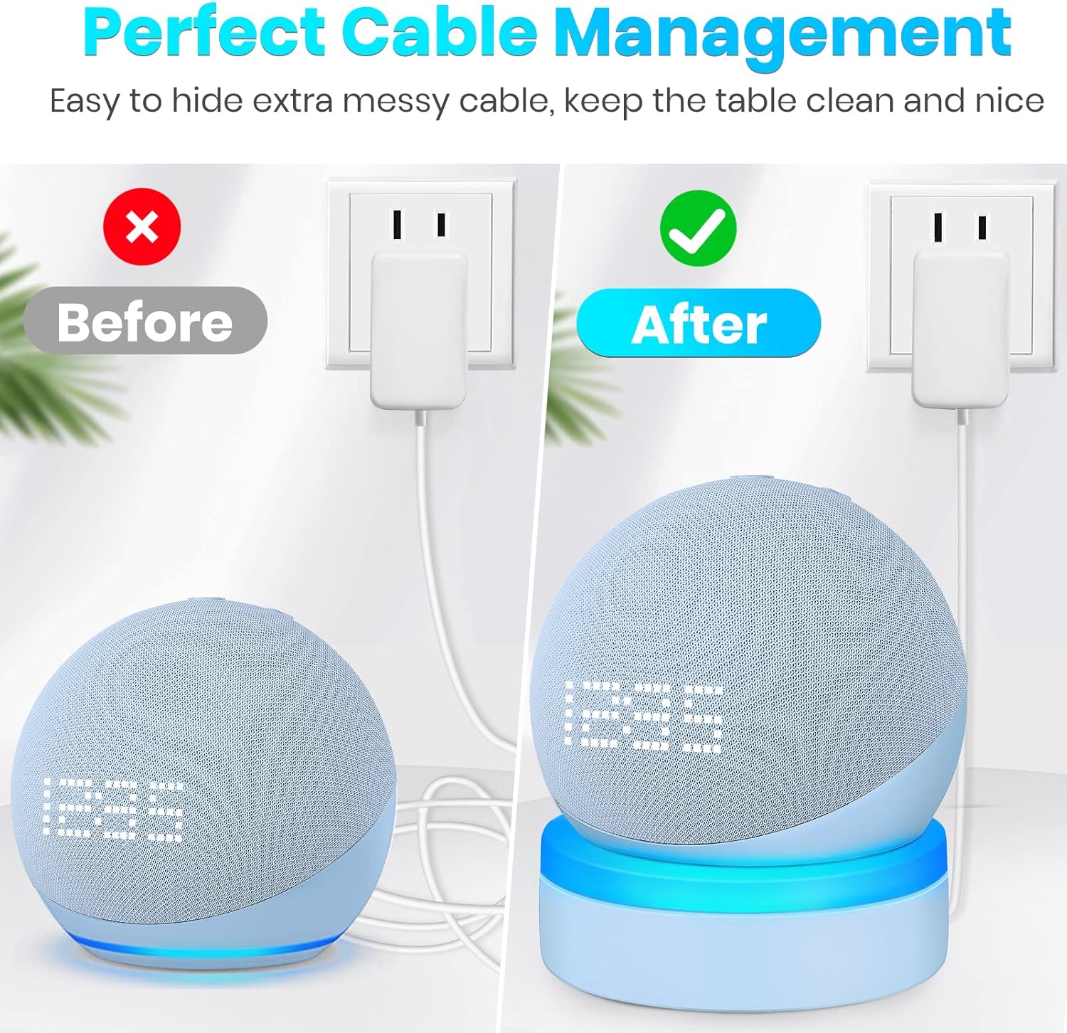FANTASTIC ADDITION TO YOUR DOT: Very easy to use, just need to wind the excess cable in the stand and connect the power supply. Made of premium ABS, Small sizes and lightweight, and lovely profiles perfectly fit for Echo Dot 4 and Dot 5 smart speakers. It'll be a must-have holder for Echo Dot 5th & 4th generation.