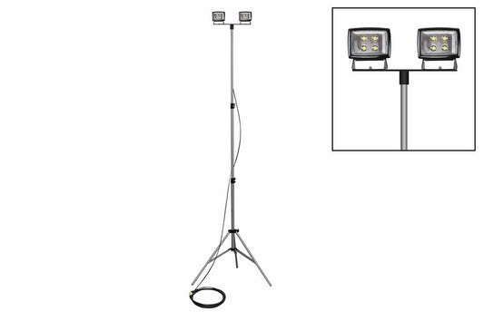 100W LED Flood Lights on Telescoping Tripod - Extends 3.5' to 10' - (2) LED Lamps - 25' Cord