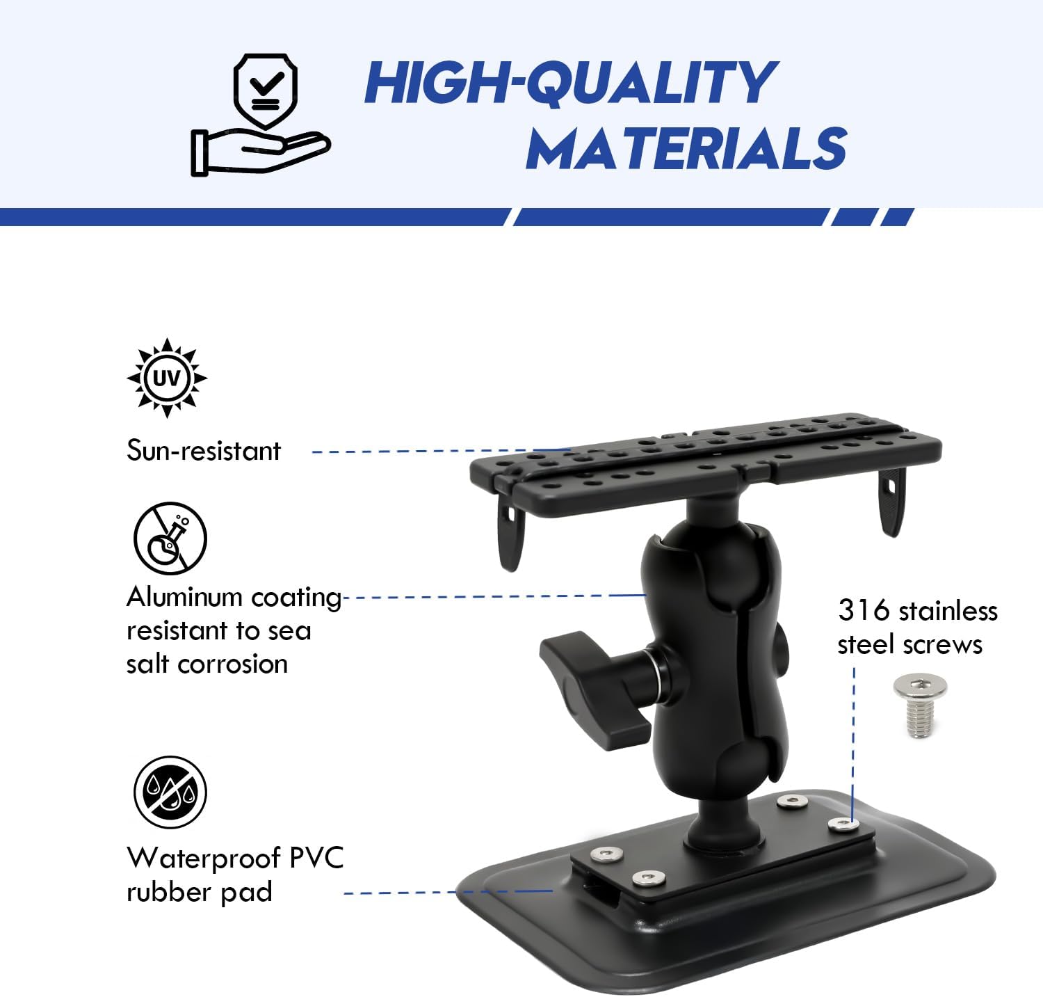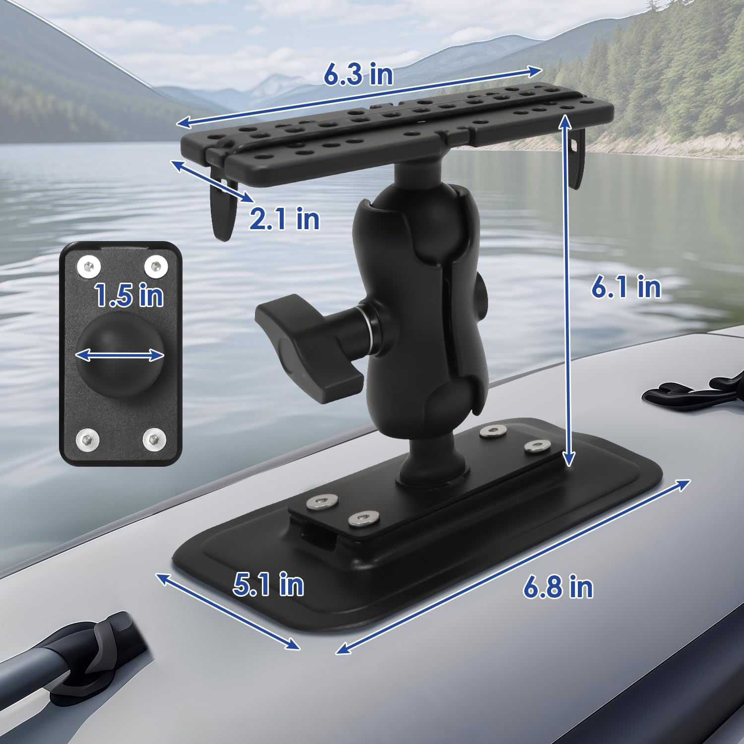 1.5" / C Size Ball Fish Finder Mount with Glue-On Pad (PVC) for Inflatable Boats/Kayak, 360° Rotation Marine Electronic/Depth Finder Mount, Compatible with Garmin, Lowrance, Humminbird and More