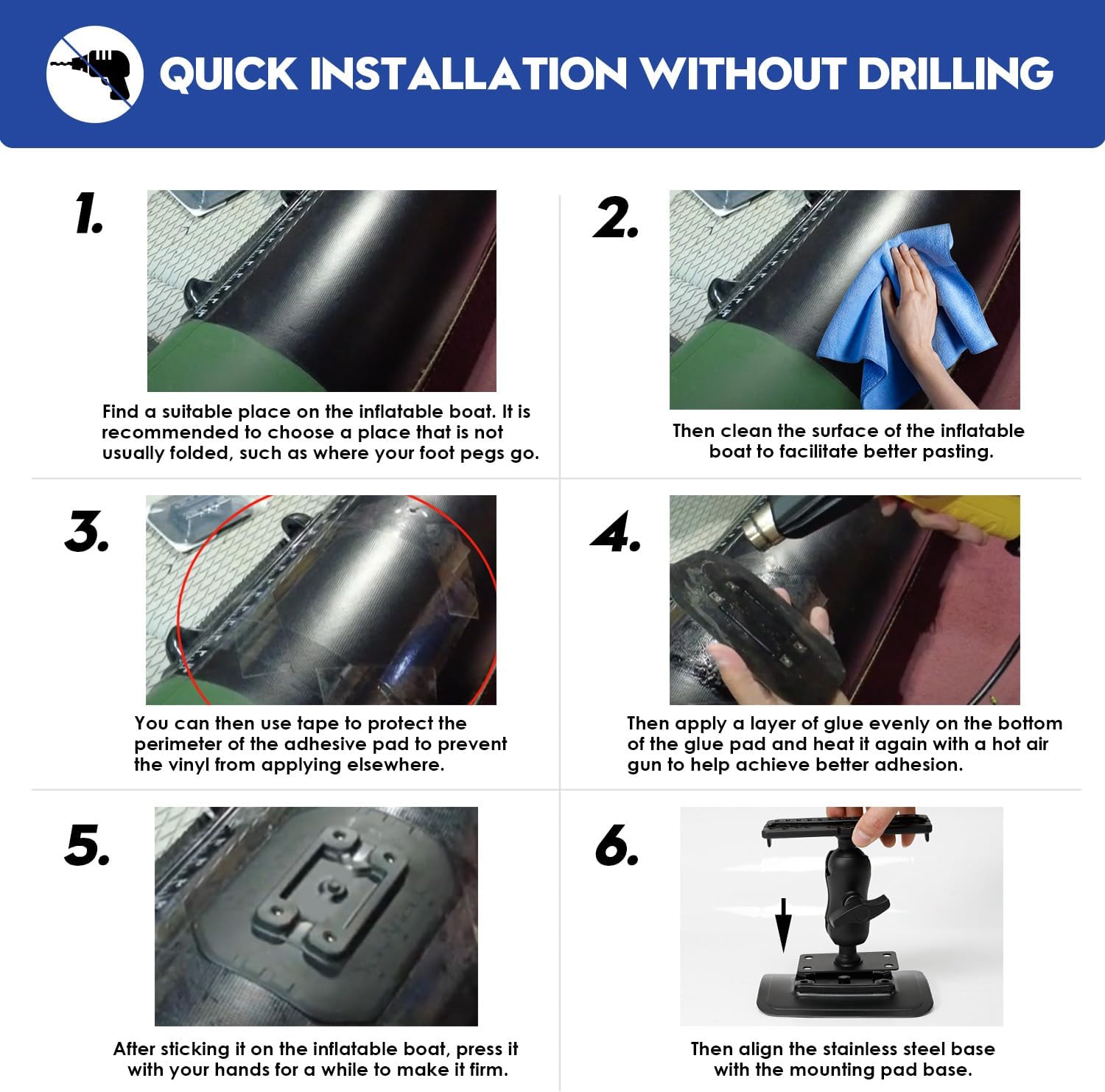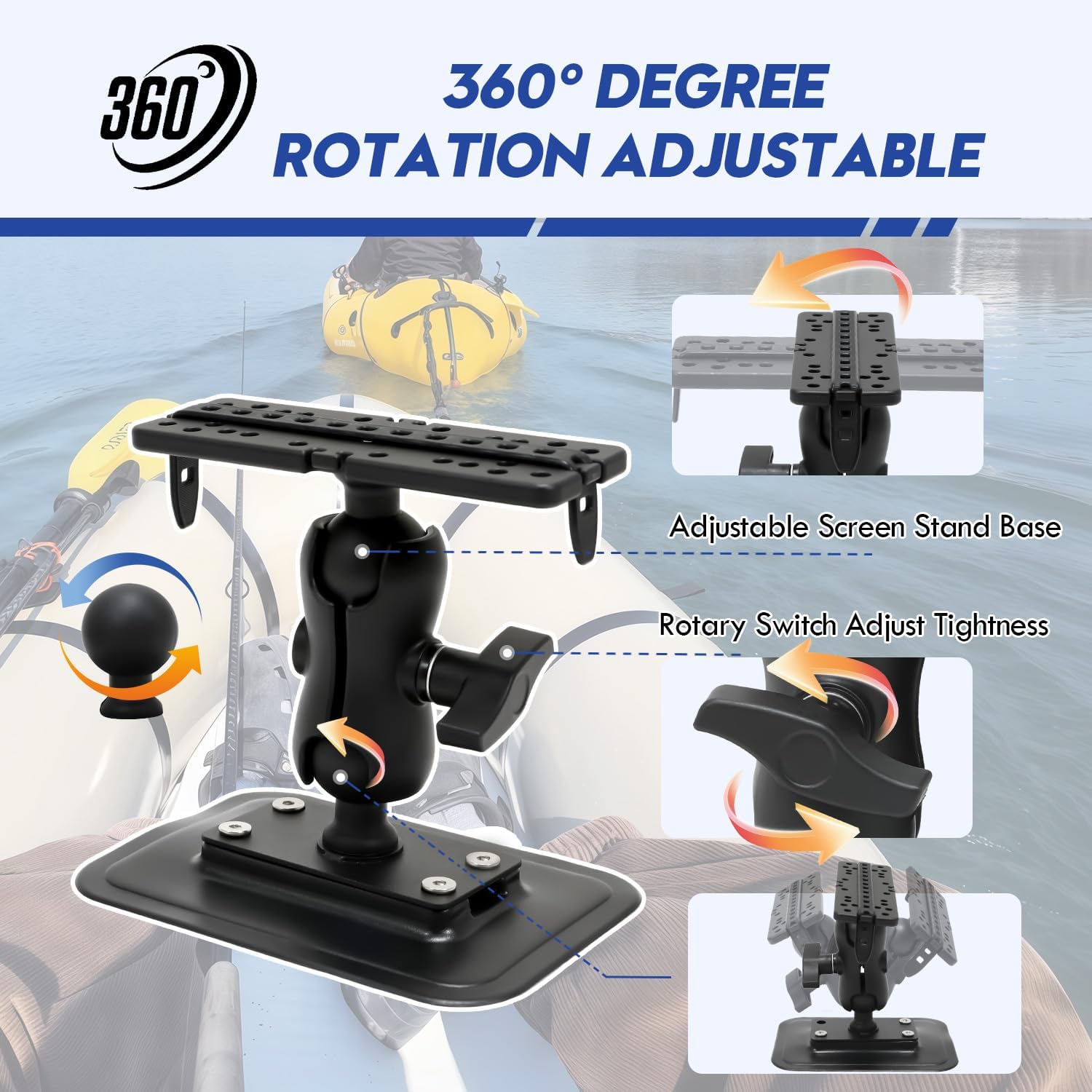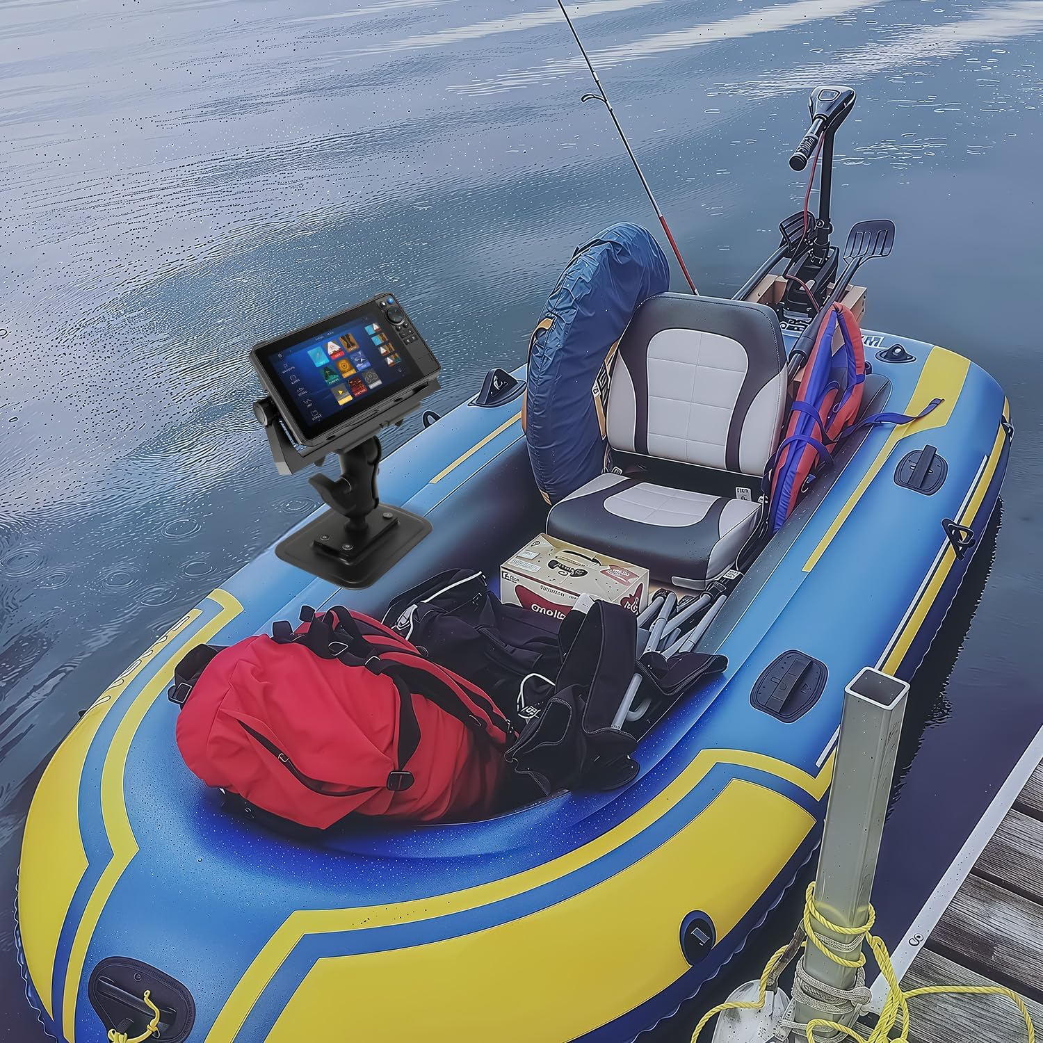 Featuring a strong glue-on PVC pad, the mount attaches firmly to inflatable boat surfaces without the need for drilling, preserving the integrity of your vessel while delivering a rock-solid hold. The C size ball-and-socket system allows smooth, effortless adjustments with a full 360° rotation, so you can position your fish finder, depth finder, or GPS exactly where you need it.