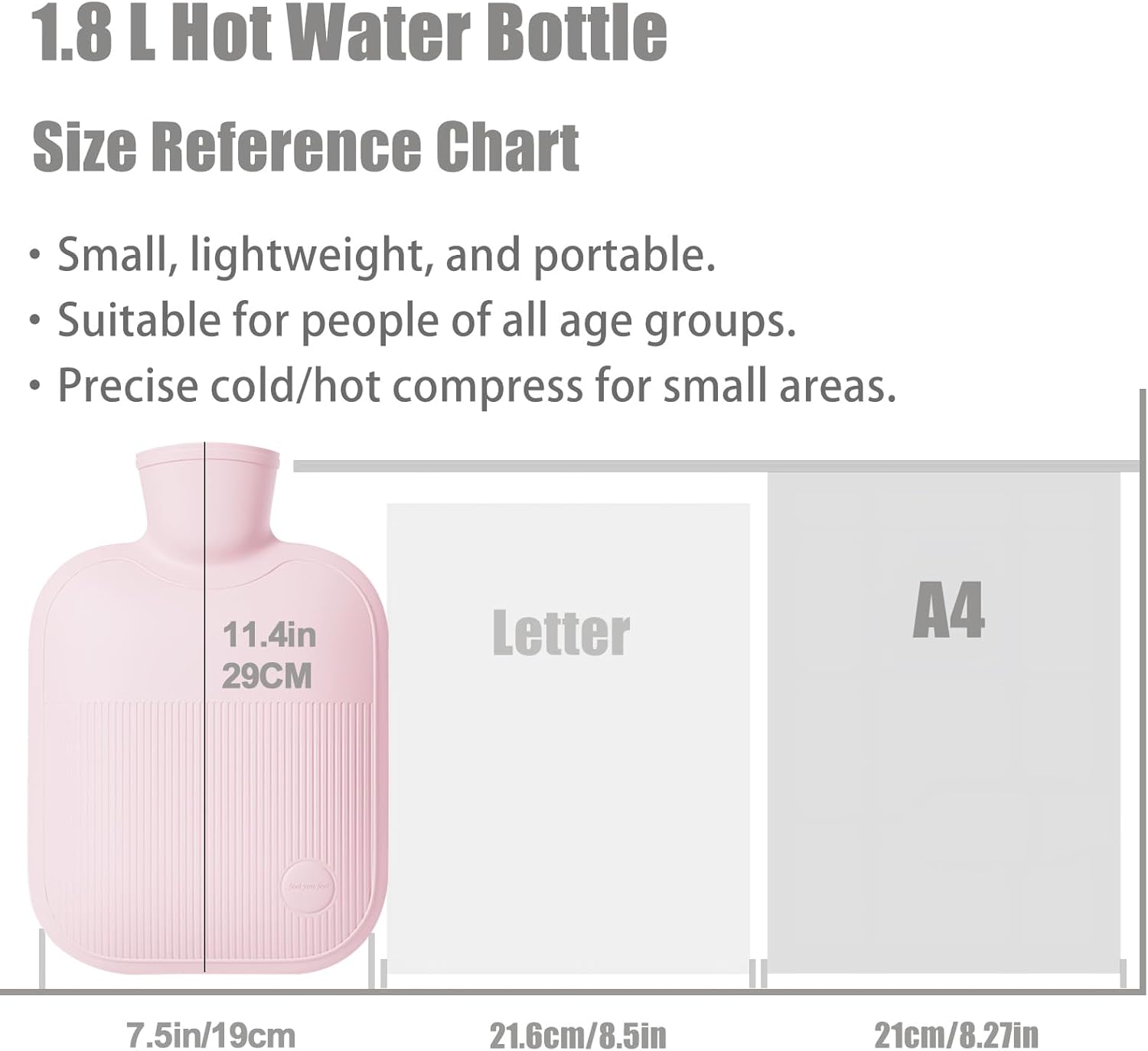 1.8L Hot Water Bottle with Cover, Hot Water Bag for Neck, Shoulder Pain and Hand Feet Warmer, Hot Bag for Pain Relief, Cold Therapy