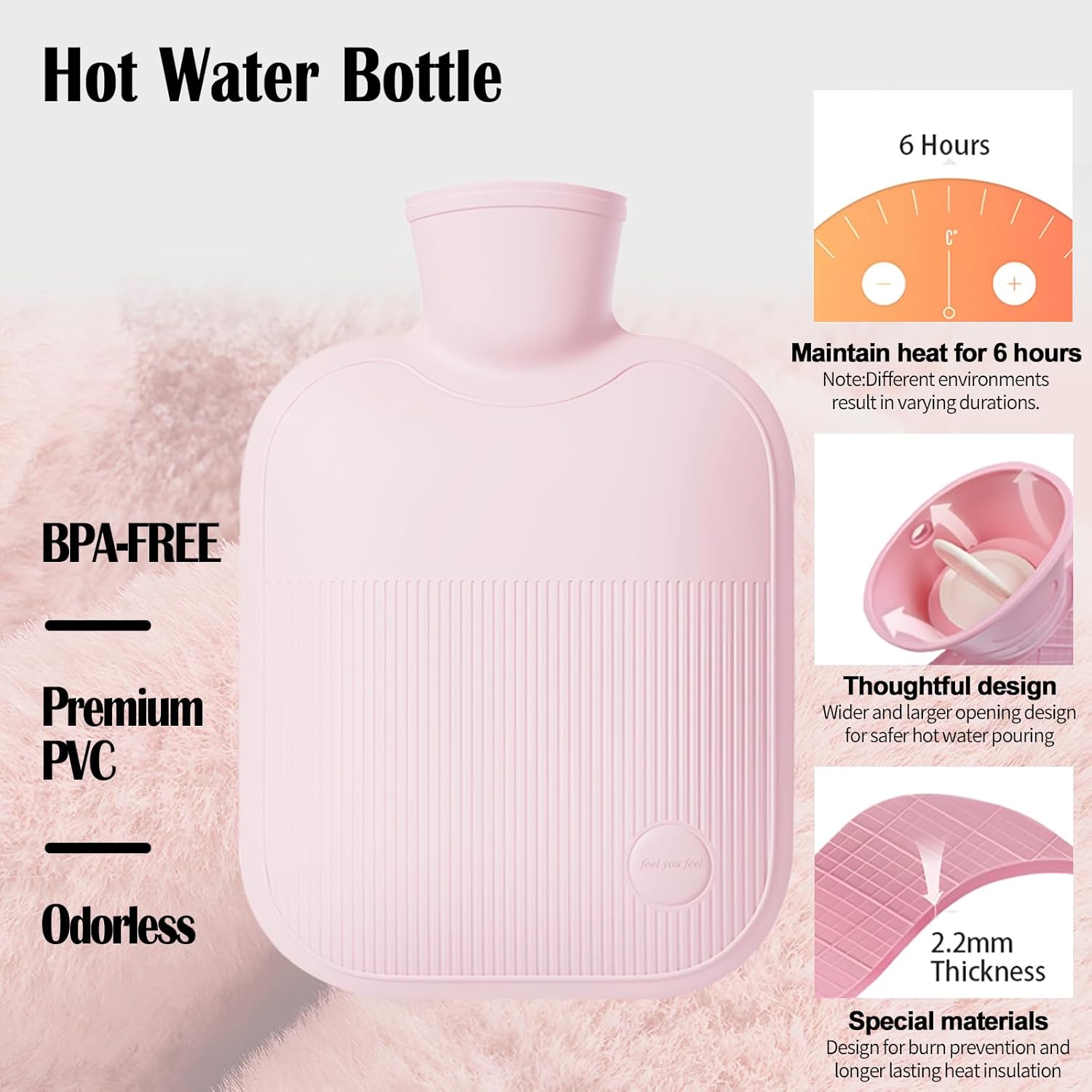 [SOFT AND KEEP WARM] Hot water bottle with soft fleece cover offers comforting warmth for cold hands and feet. soft fleece cover is removable.