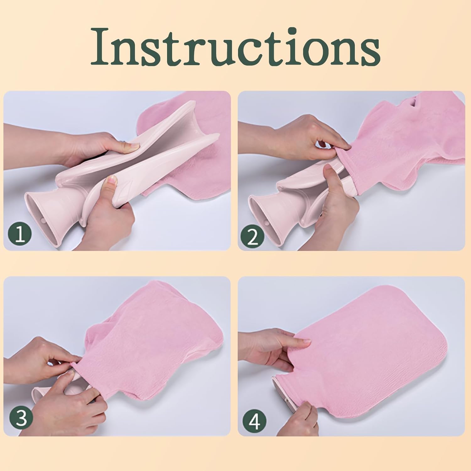 [SAFE AND EASY TO USE] First open the cap, then fill the hot water bottle two-thirds full with 80 degree water. Finally, tighten the cap and turn the warm water bag upside down to check for leaks.