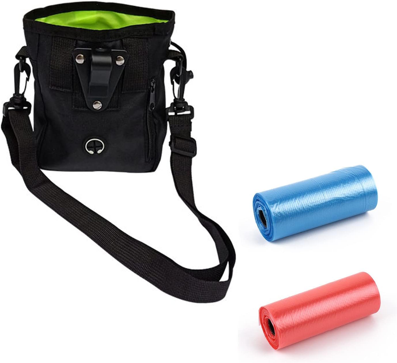 • Package Contents:You will get 1 pcs dog treat pouch and 2 rolls of Poop Bags.The dog treat pouch has multiple functional pockets with enough space to store daily dog walking and dog training tools.