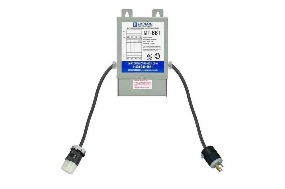 The MT-BBT-208V-230V-10.42A-2X2FT-L6.30 single phase step-up prewired Buck and Boost Transformer from Larson Electronics is powerful, reliable,and designed with the environment in mind. Suitable for both indoor and outdoor applications, the MT-BBT-208V-230V-10.42A-2X2FT-L6.30provides increased reliability, higher efficiency, protection against critical equipment failures and an extra level of protection by isolating the power source from the connected device. The lower operating costs, lower heat emissions and lower cost of ownership make this transformer ideal for a wide range of applications and businesses. The MT-BBT-208V-230V-10.42A-2X2FT-L6.30 is a prewired transformer for customer installation and is equipped with 2` of 12/3 SOOW cable on each side connected to the transformer with a 30 amp 250V L6-30P twistlock plug on the primary side and a 30 amp 250V L6-30C twistlock receptacle on the secondary side.