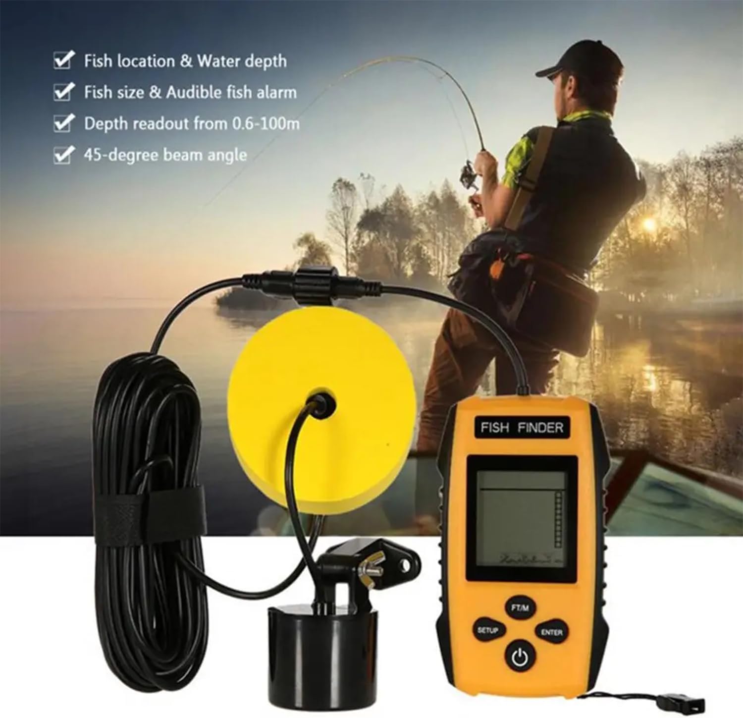 100M Sonar Fish Finders 45 Degrees Sonar Coverage Echo Sounder Alarm Transducer Underwater Fishing Detector for Lake Sea Fishing