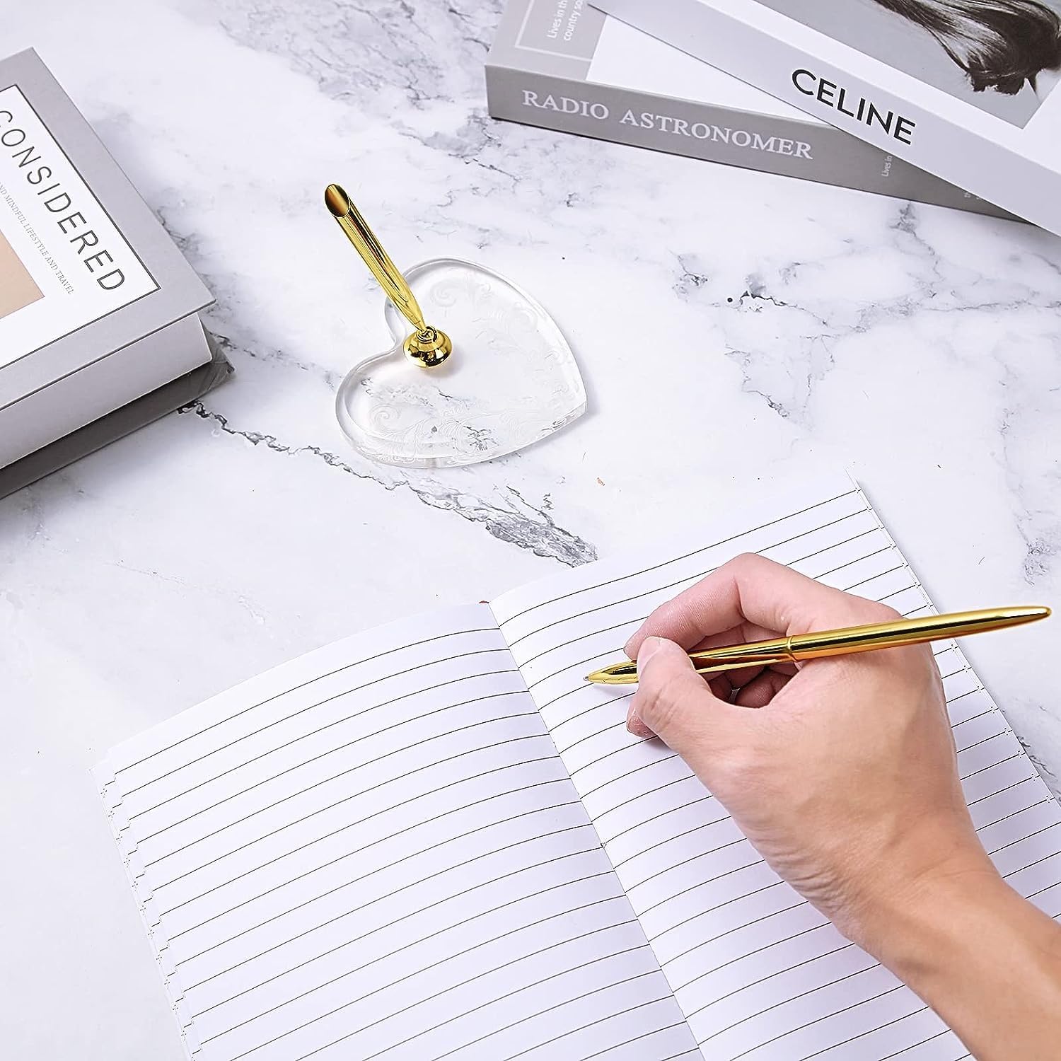 • 【Heart Acrylic Pen Stand】Clear pen holder and a golden pen with black ink are perfect accessories for guest book signing in wedding, engagement or other special days.