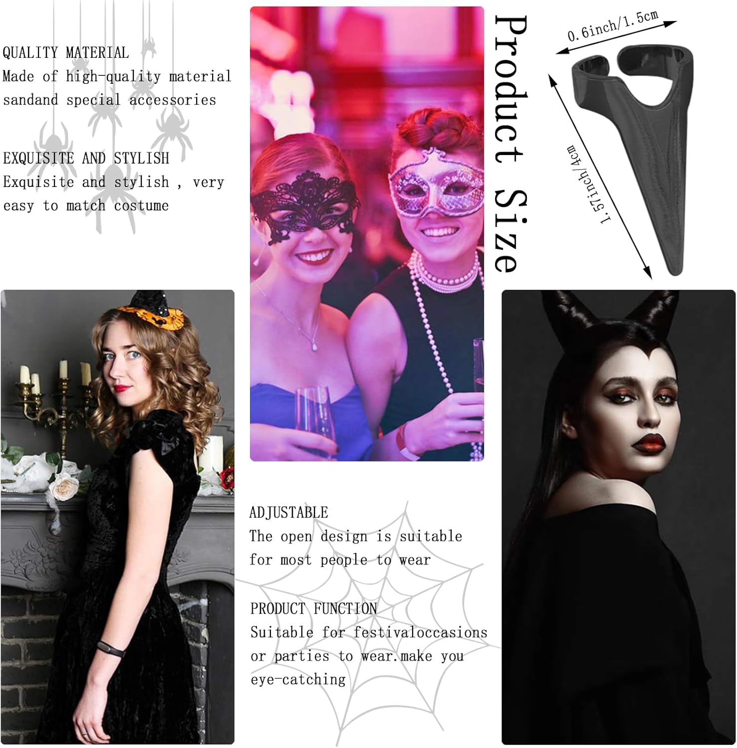 - 💖【Halloween Costume Nails Full Finger Set】This gothic metal claw ring can be used not only as a werewolf look, vampire look, but also as a hair sectioning ring. Hairdressers can use this claw ring to braid hair, very convenient and practical. The nail is adjustable, the inner diameter of the Nail is about 0.7 in/ 1.8 cm, and the overall length of the ring is about 1.2 in/ 3 cm, which the open design is suitable for most people to wear.