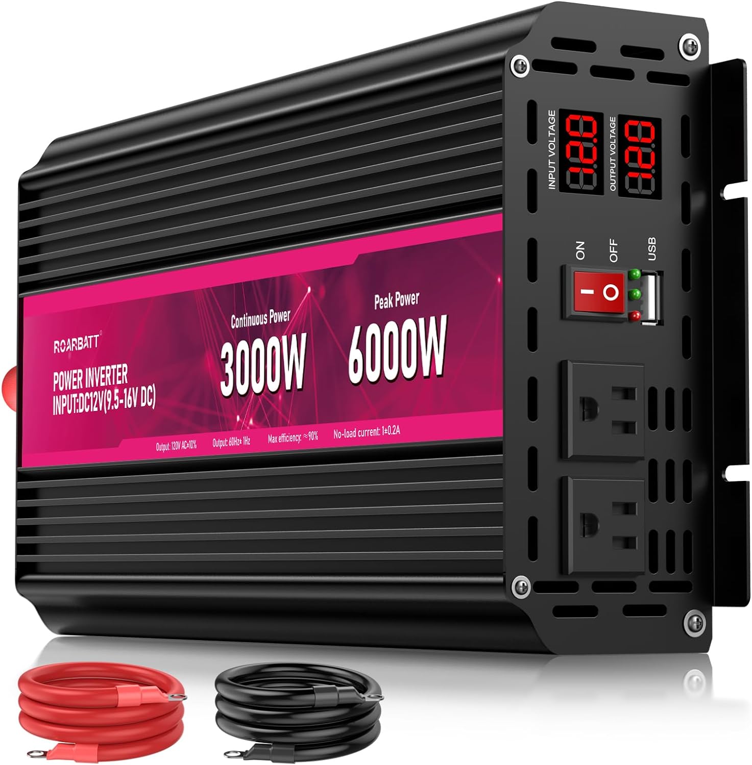 - 【What You Get】 You will get 1 x 3000W power inverter, 1 x pairs of battery cables(black and red),1x user manual, 24 hours customer service support for your 100% satisfaction.