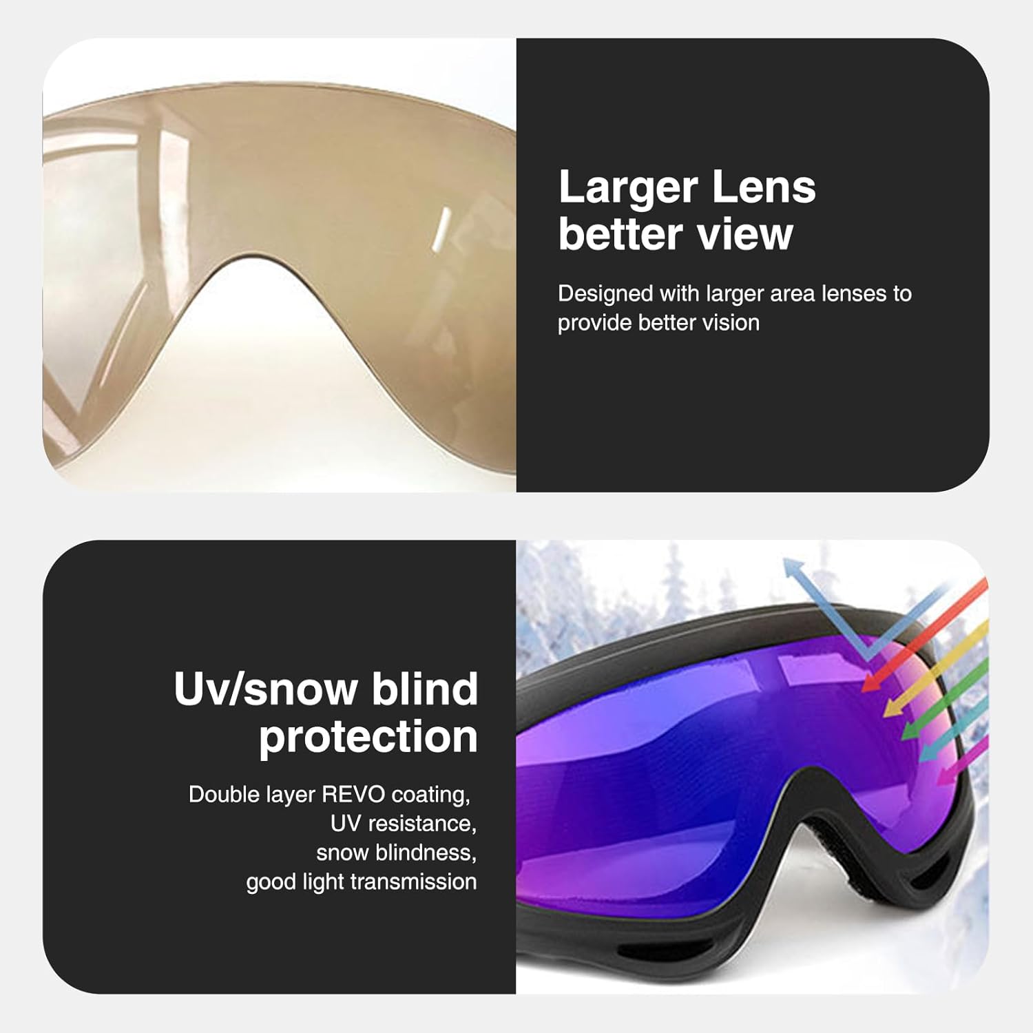 - [Excellent protective performance]This ski goggle adopts a unique design and provides excellent protection while ensuring comfort, allowing you to do whatever you want in various sports
